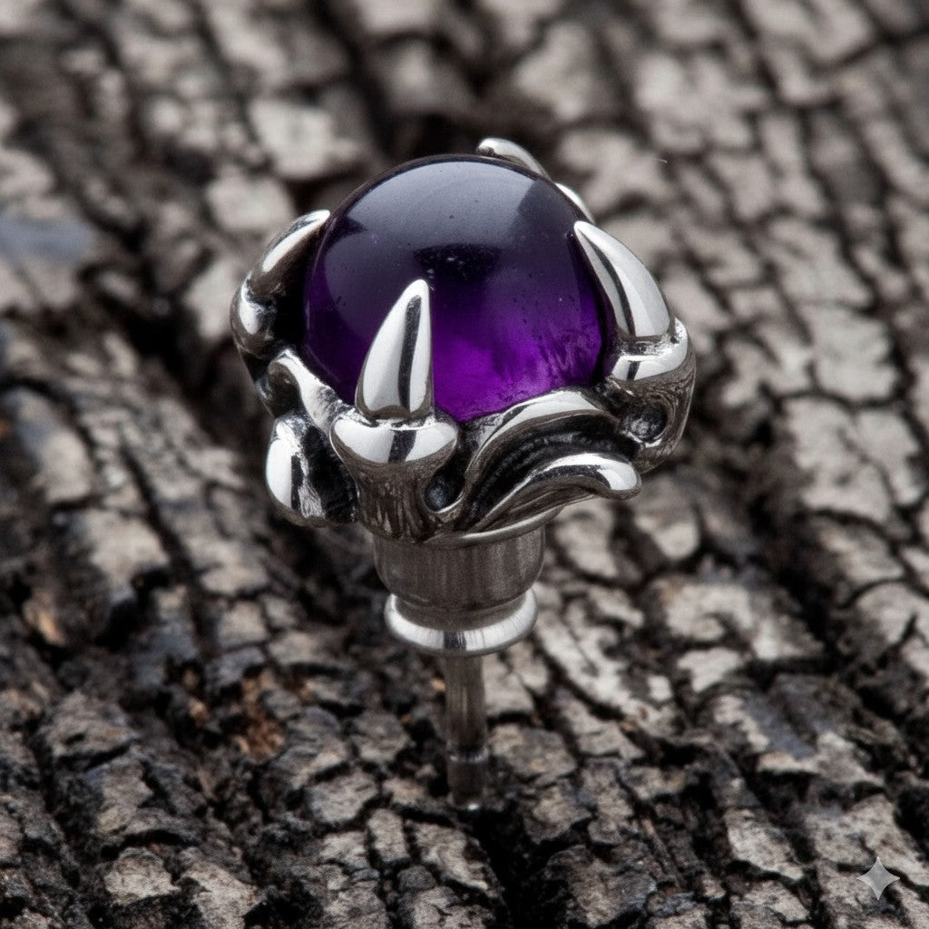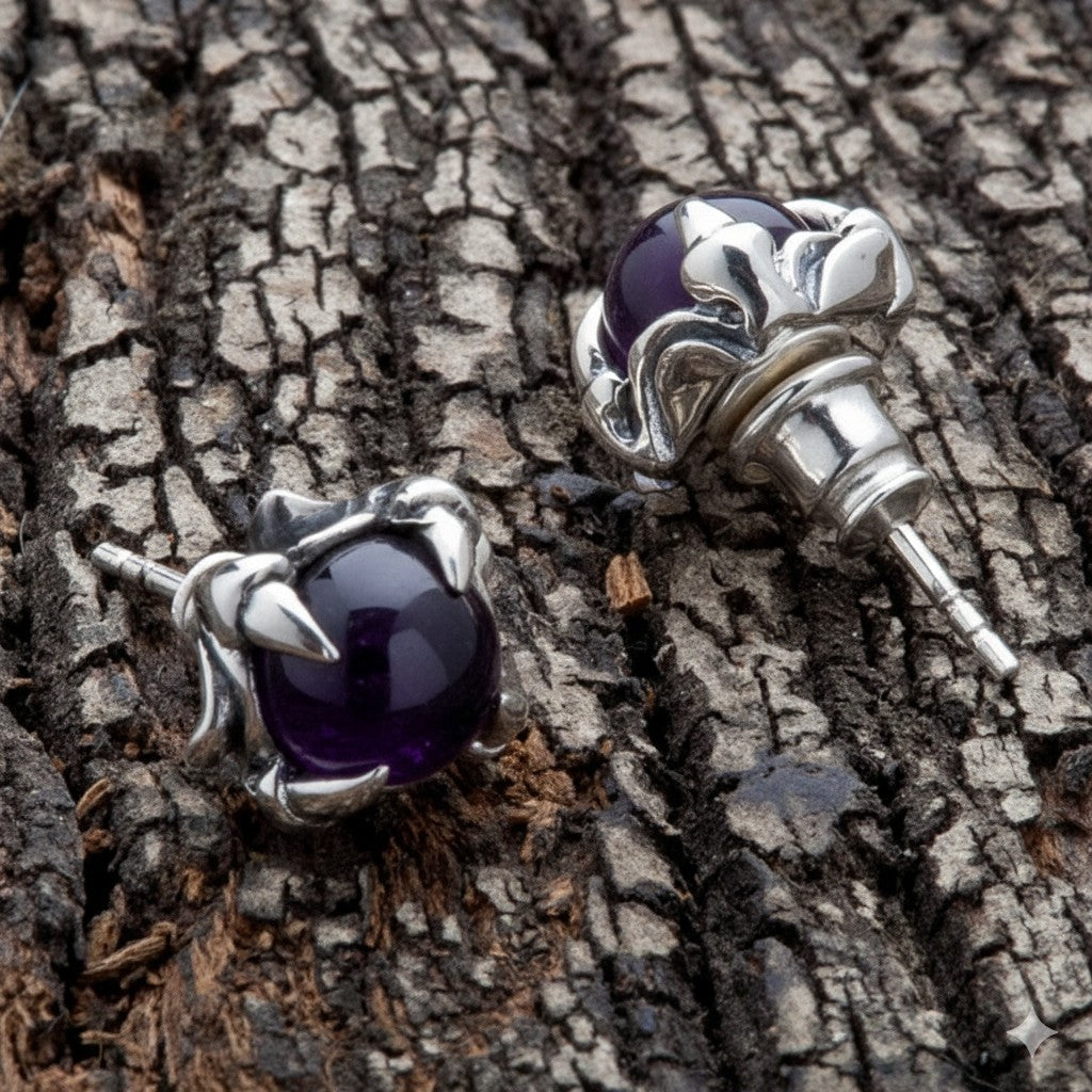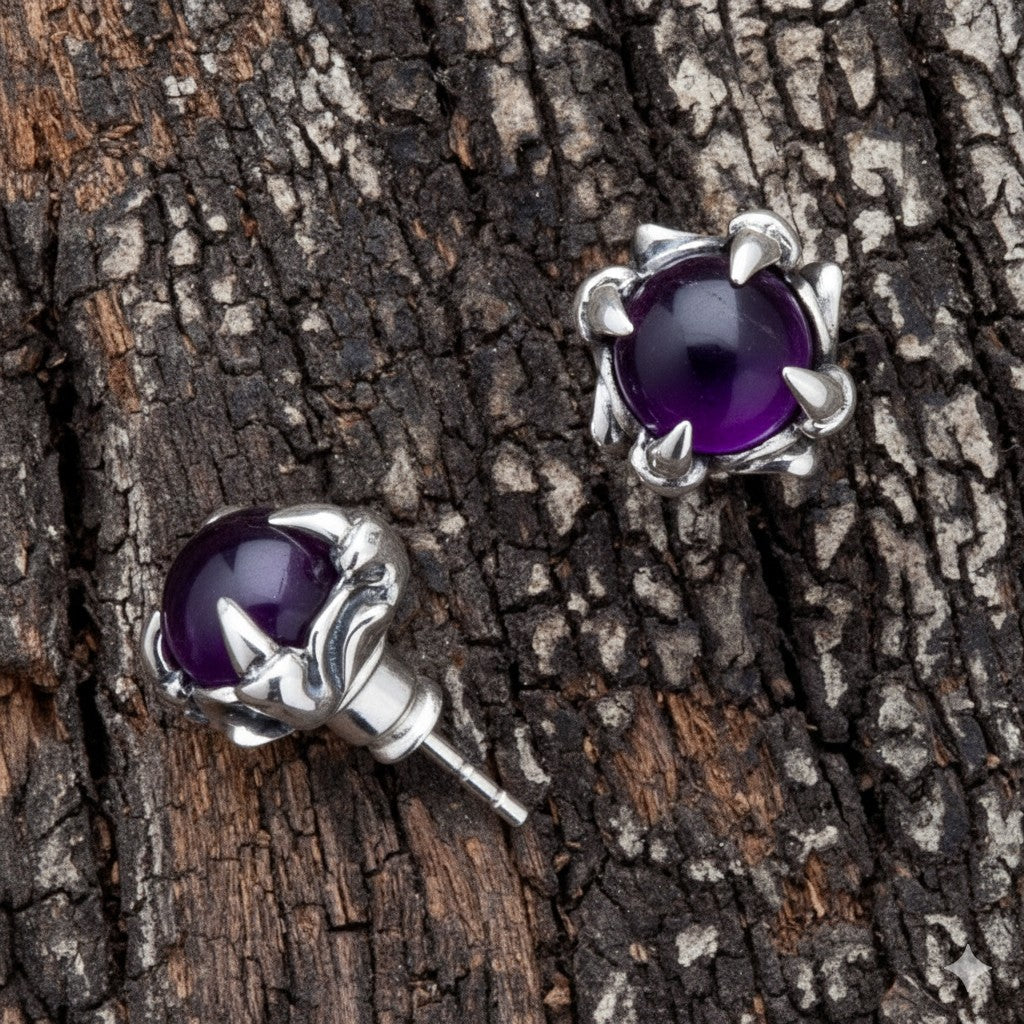 أقراط أذن برأس مسمار من الفضة الإسترليني بمخلب الأميثيست القوطي