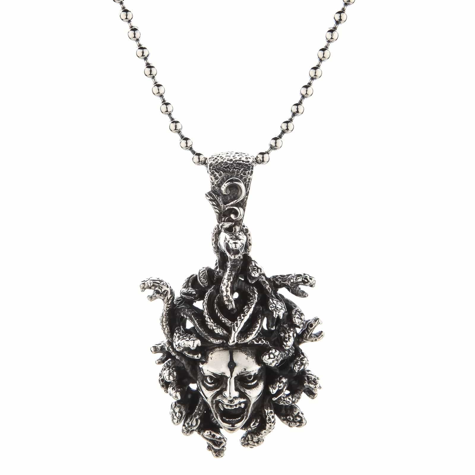 قلادة رأس ميدوسا – مجوهرات قوطية بارزة من الفضة الإسترلينية