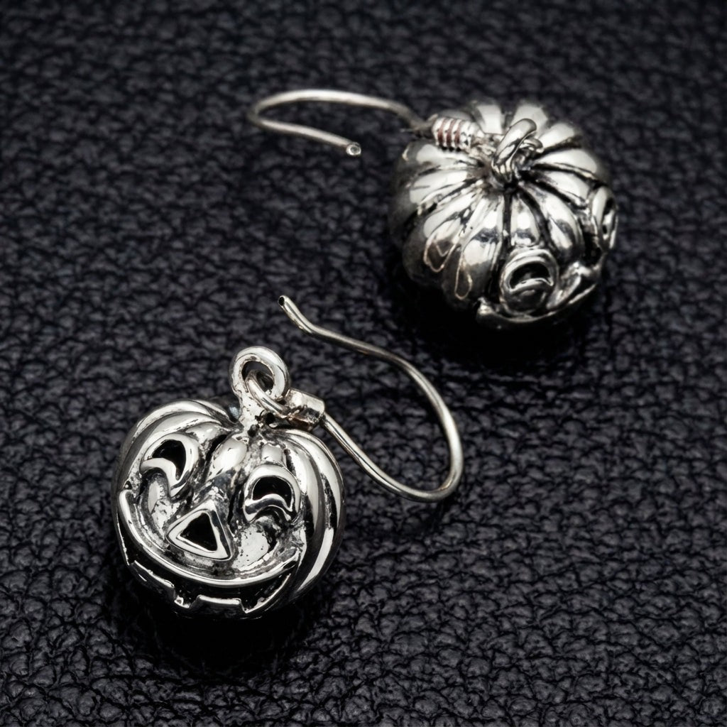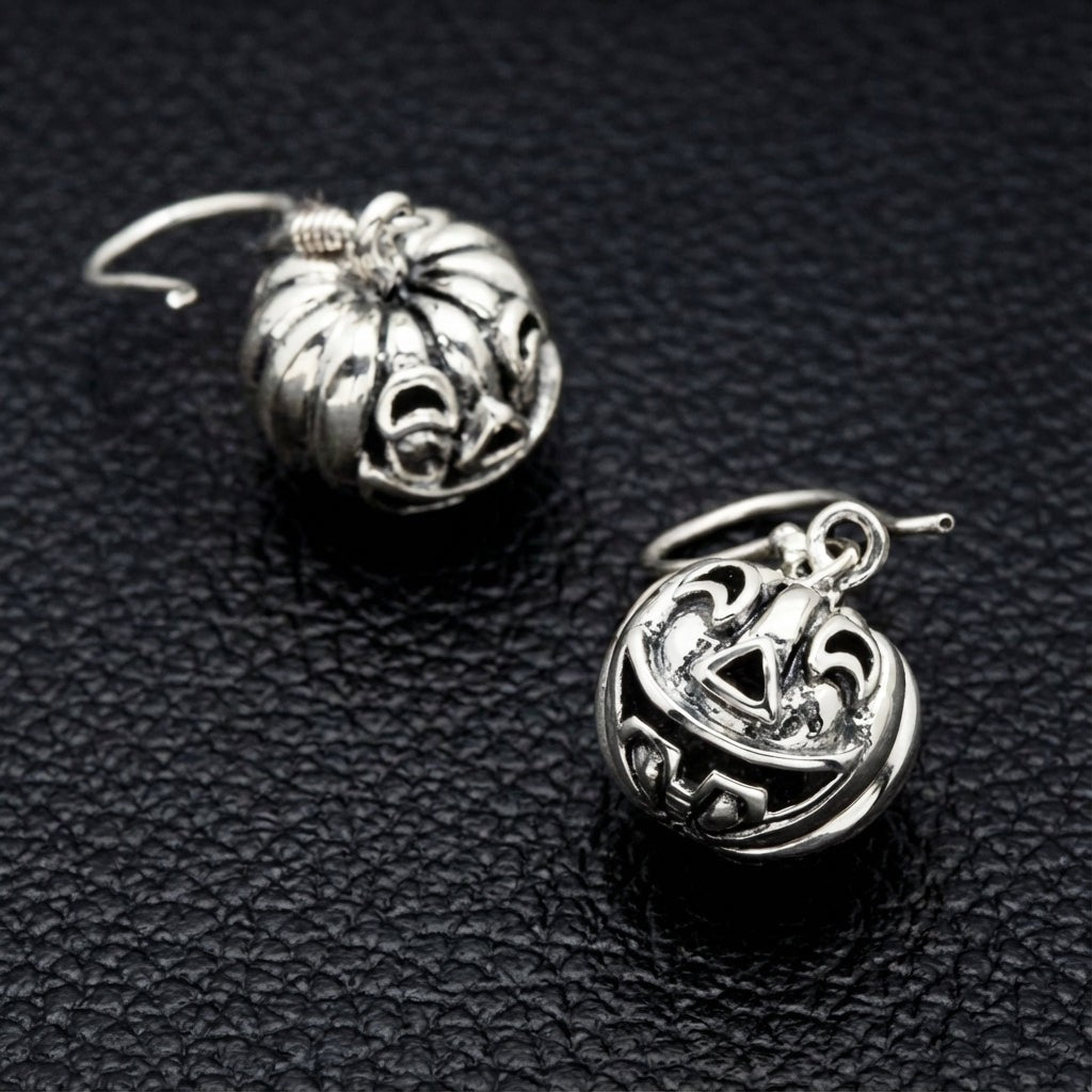 أقراط رأس اليقطين لعيد الهالوين من الفضة الإسترليني ~جديد
