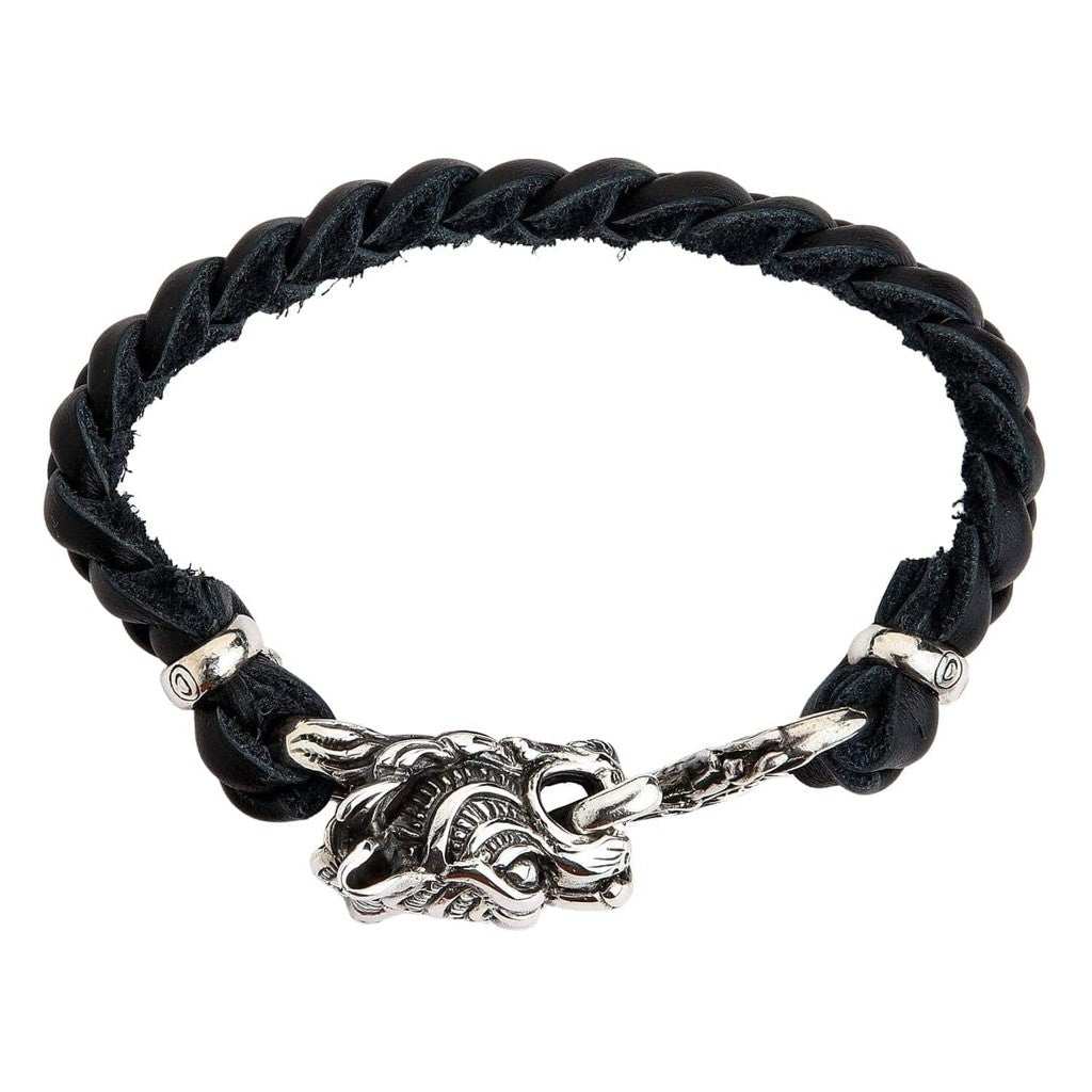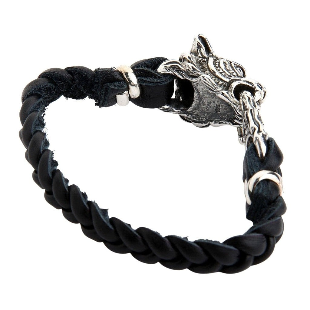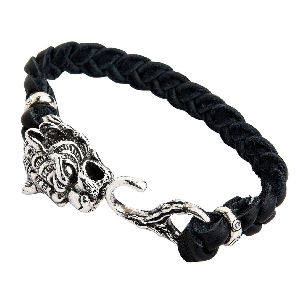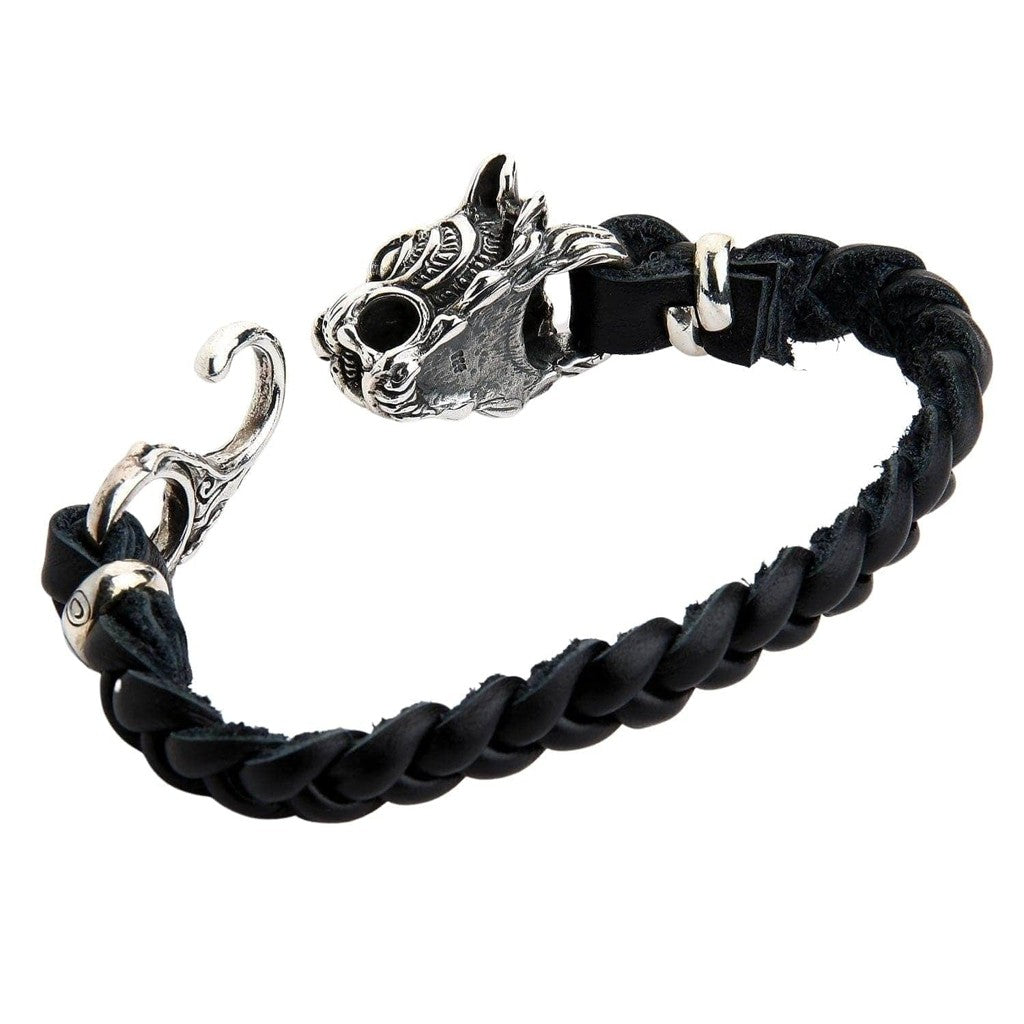سوار الدراجين من الجلد المضفر الأصلي برأس نمر فضي