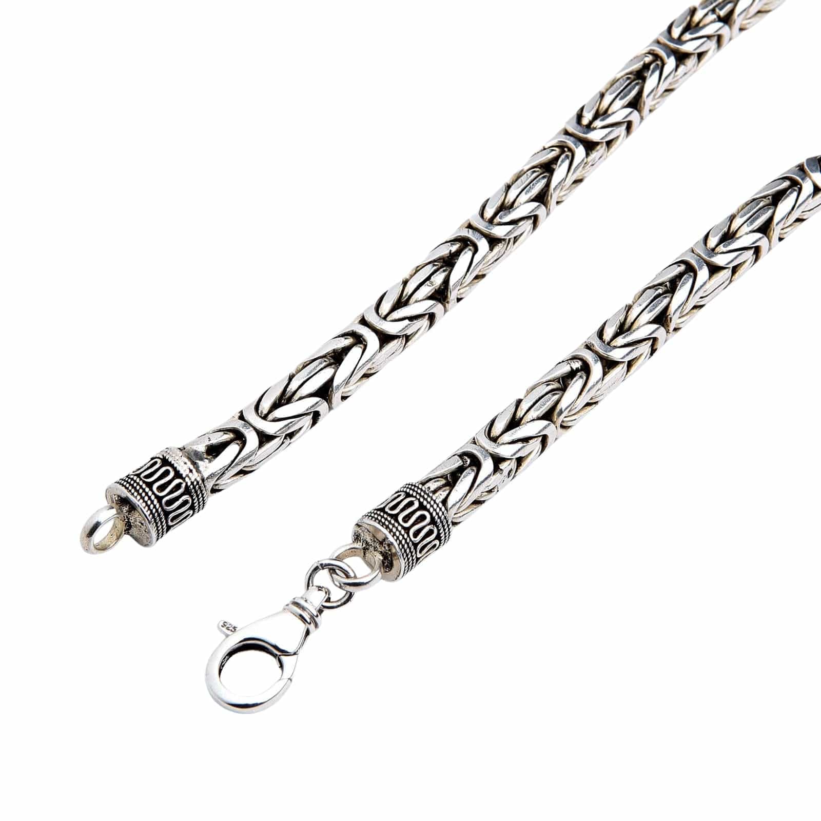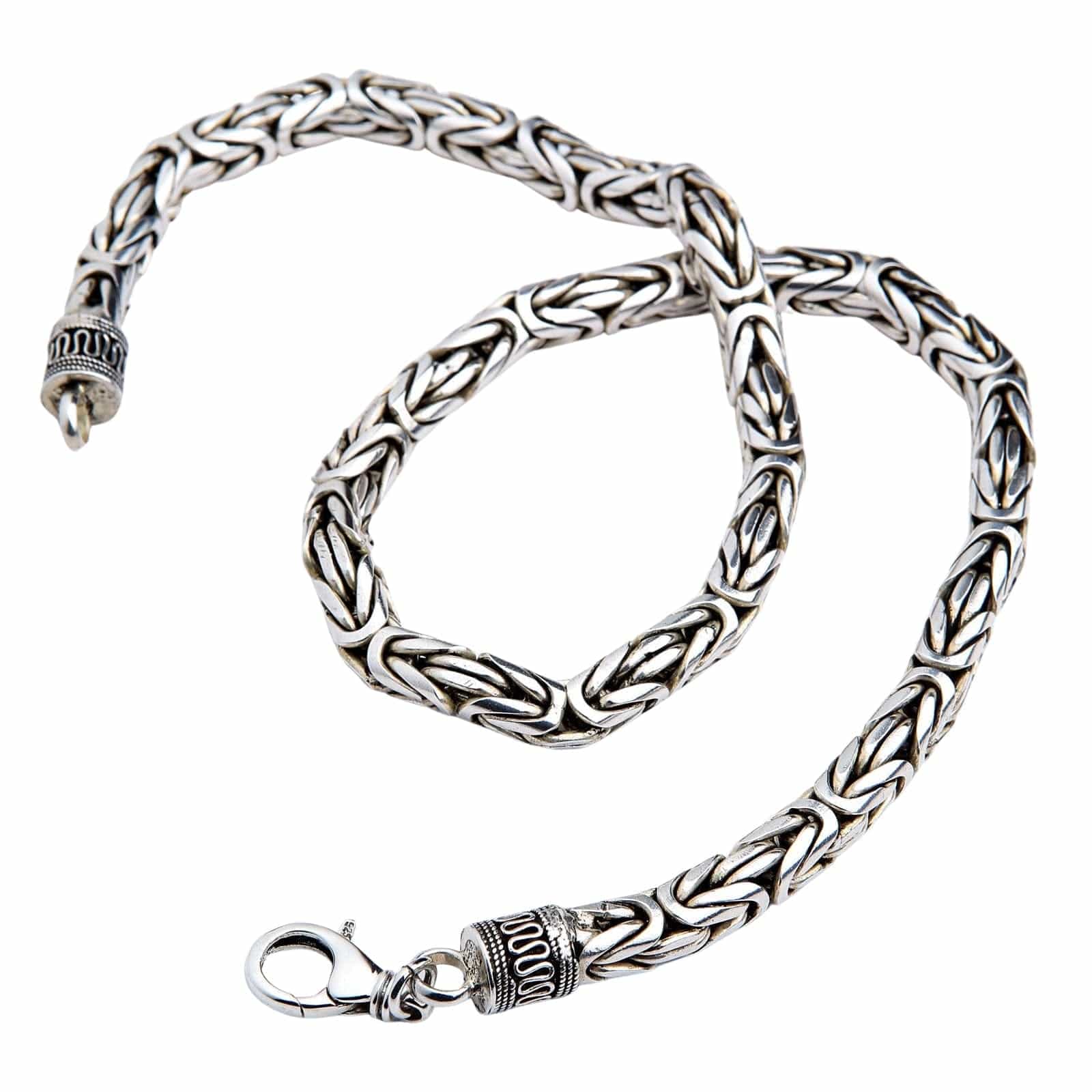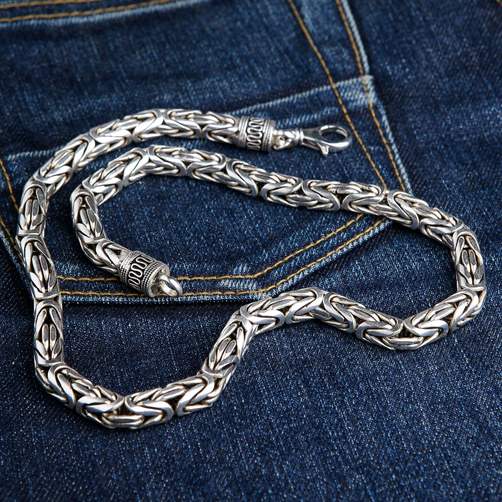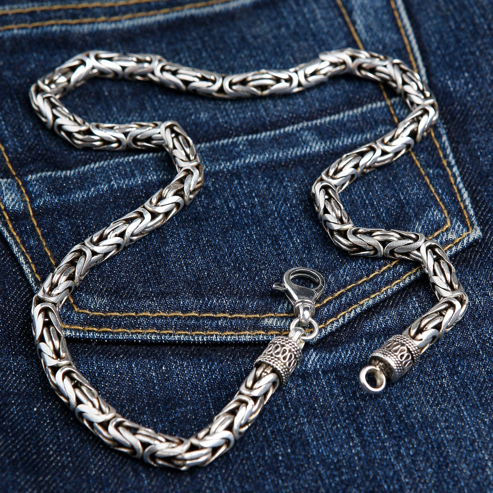 The legendary Byzantine weave is a complex, ancient pattern where each link is intricately woven through four others. At an unprecedented 8mm thickness, this technique creates an incredibly dense, flexible, and powerful rope-like chain that has an unmatched presence and a tangible feel of quality. This is one of the thickest silver chains for men you will ever find, a true testament to the weaver's art and a formidable piece of personal armor.