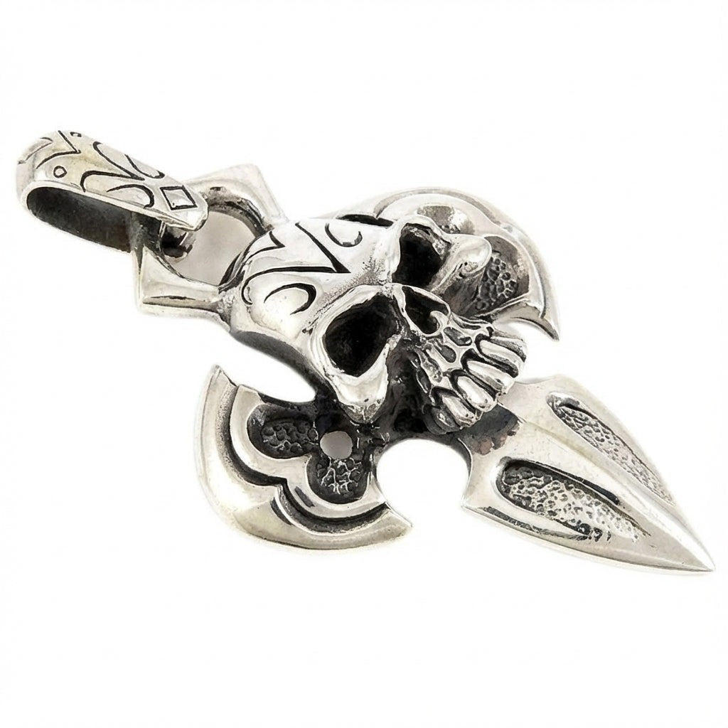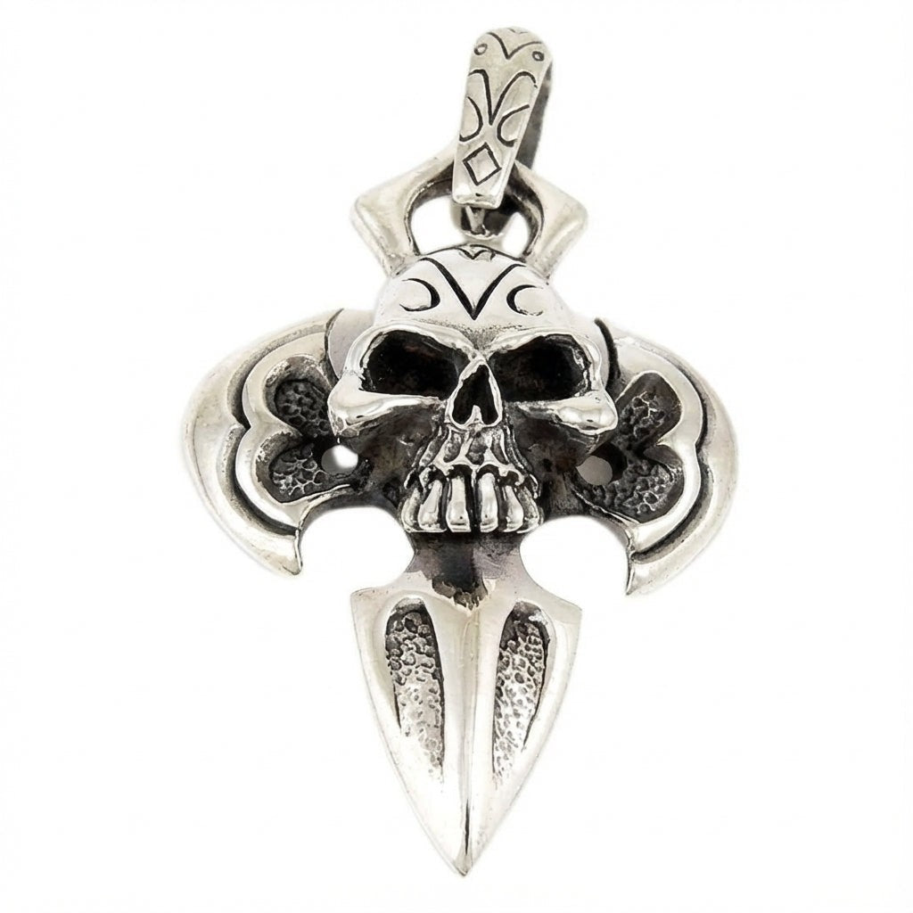 Velký přívěsek ve tvaru lebky s dýkou ze sterlingového stříbra ve stylu gothic