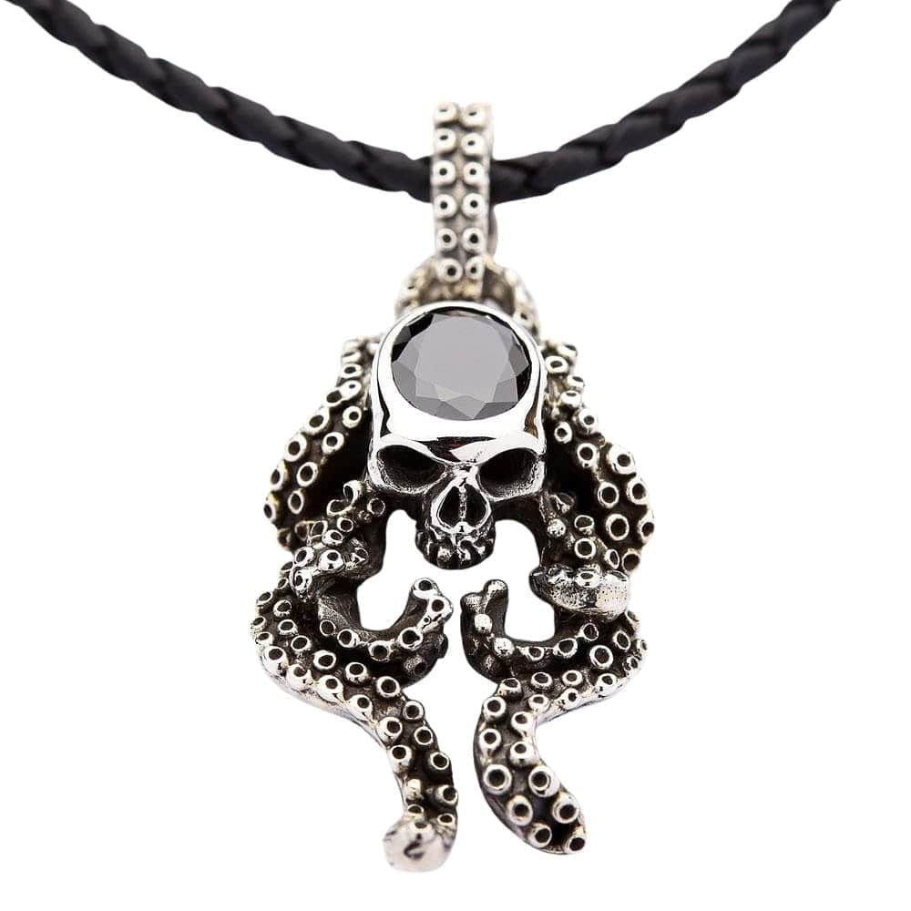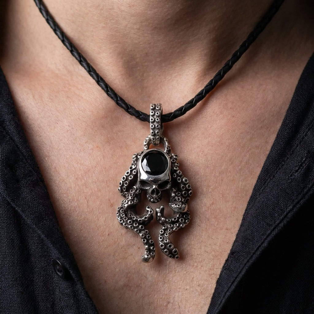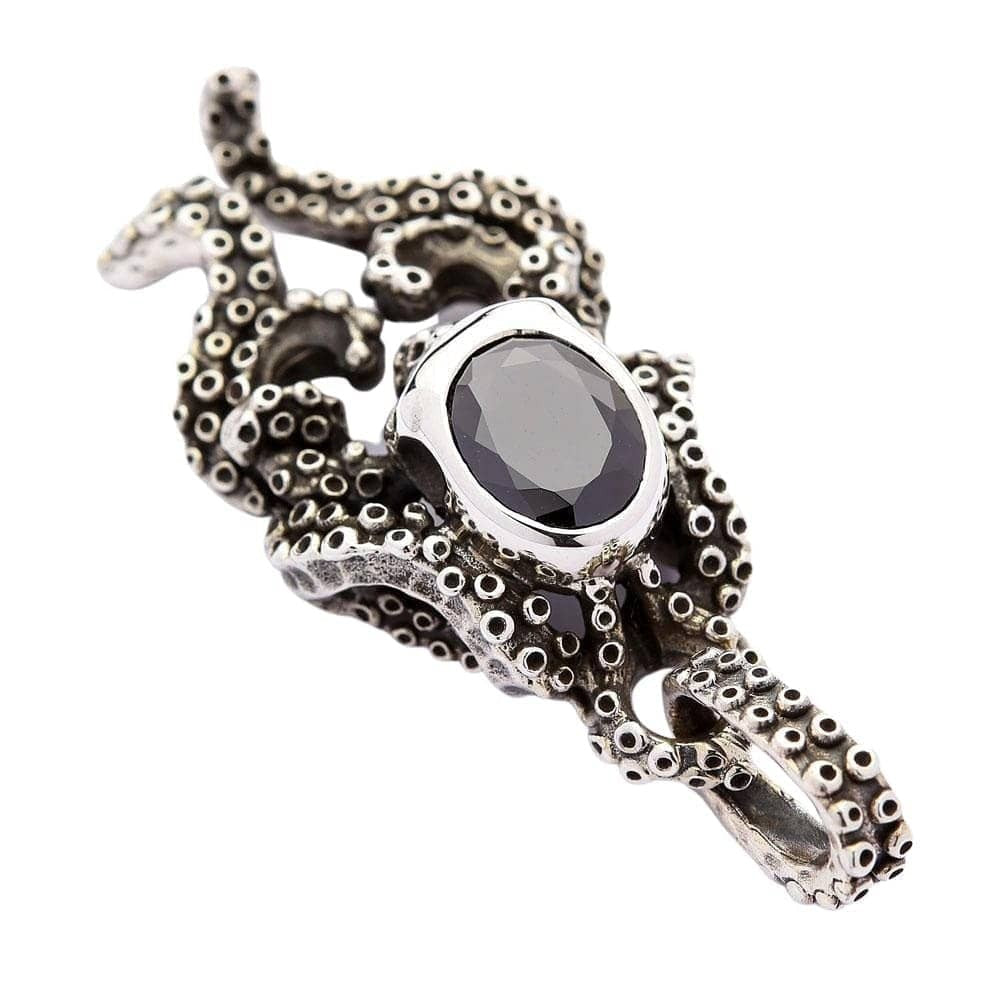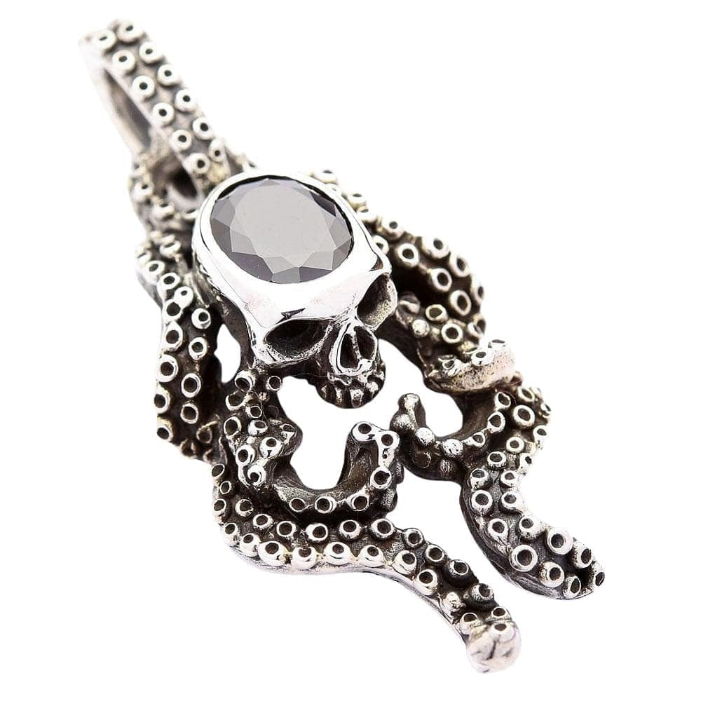 Černý onyx lebka chobotnice Stříbrný gotický přívěsek