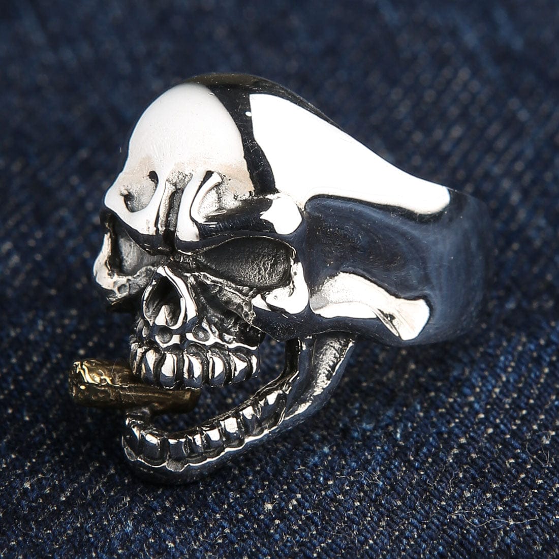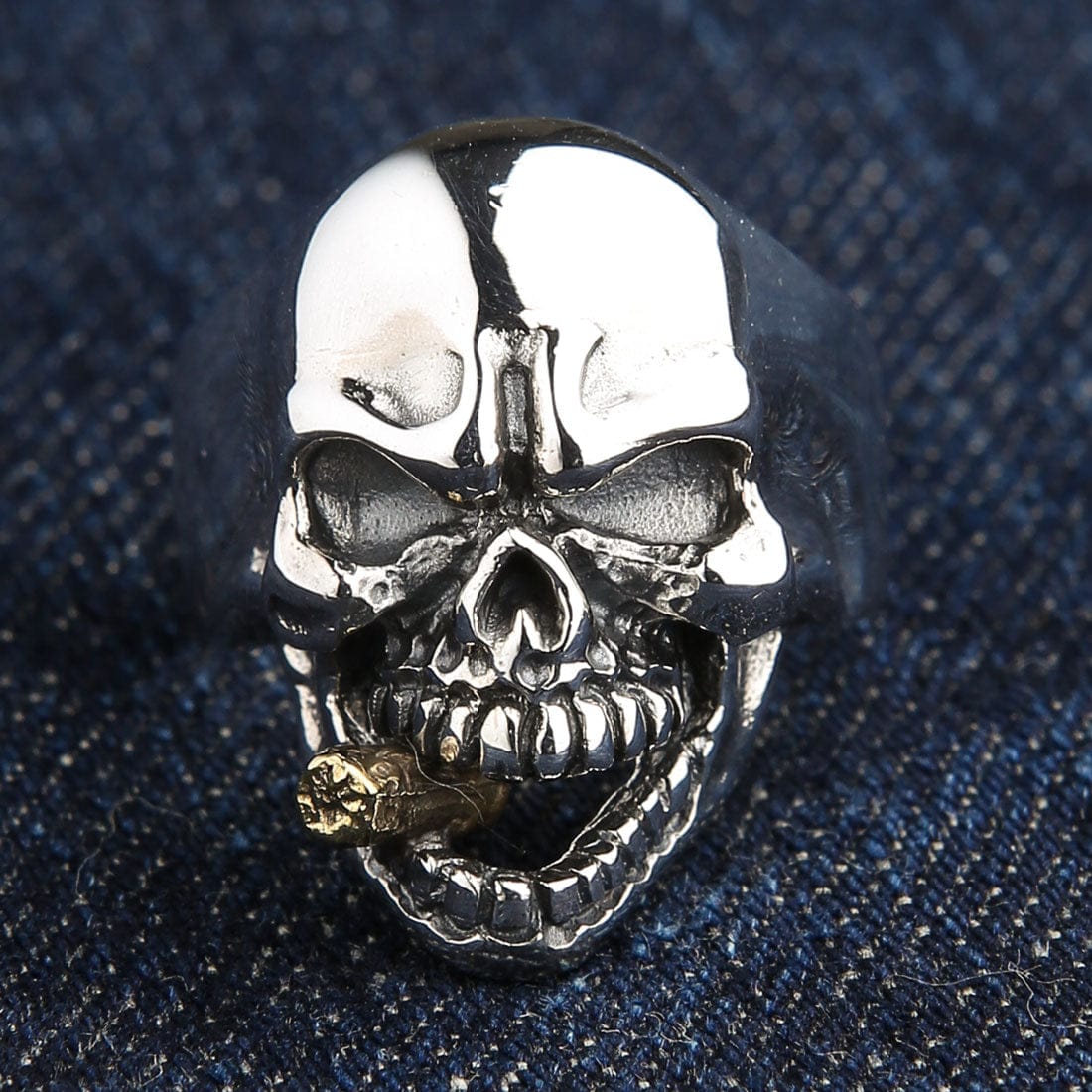 Q: What does a smoking skull ring symbolize? A: A cigarette skull ring is a classic symbol in biker and rockabilly culture that represents a "live fast" or "devil-may-care" attitude. It's a statement of cool defiance in the face of mortality and an unapologetic embrace of life's pleasures.