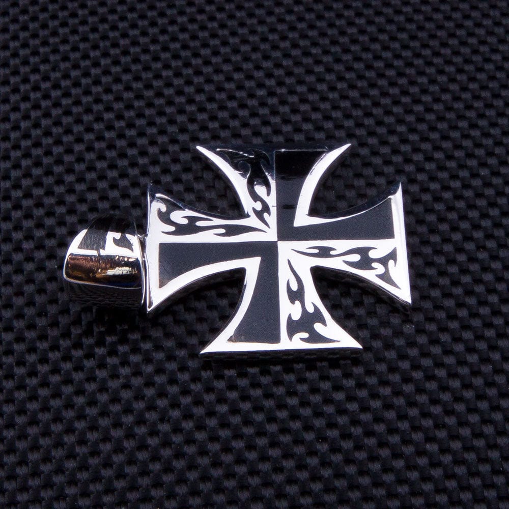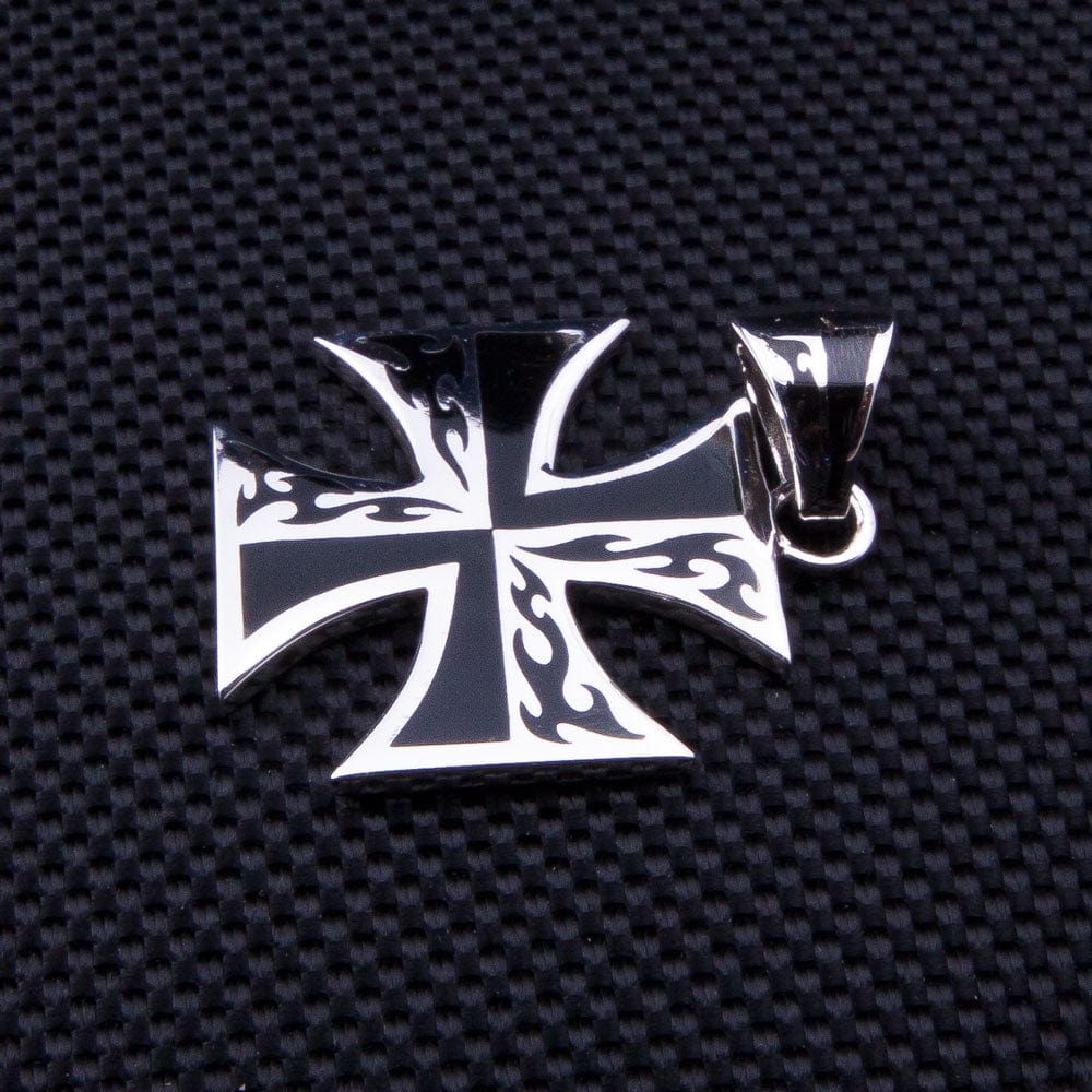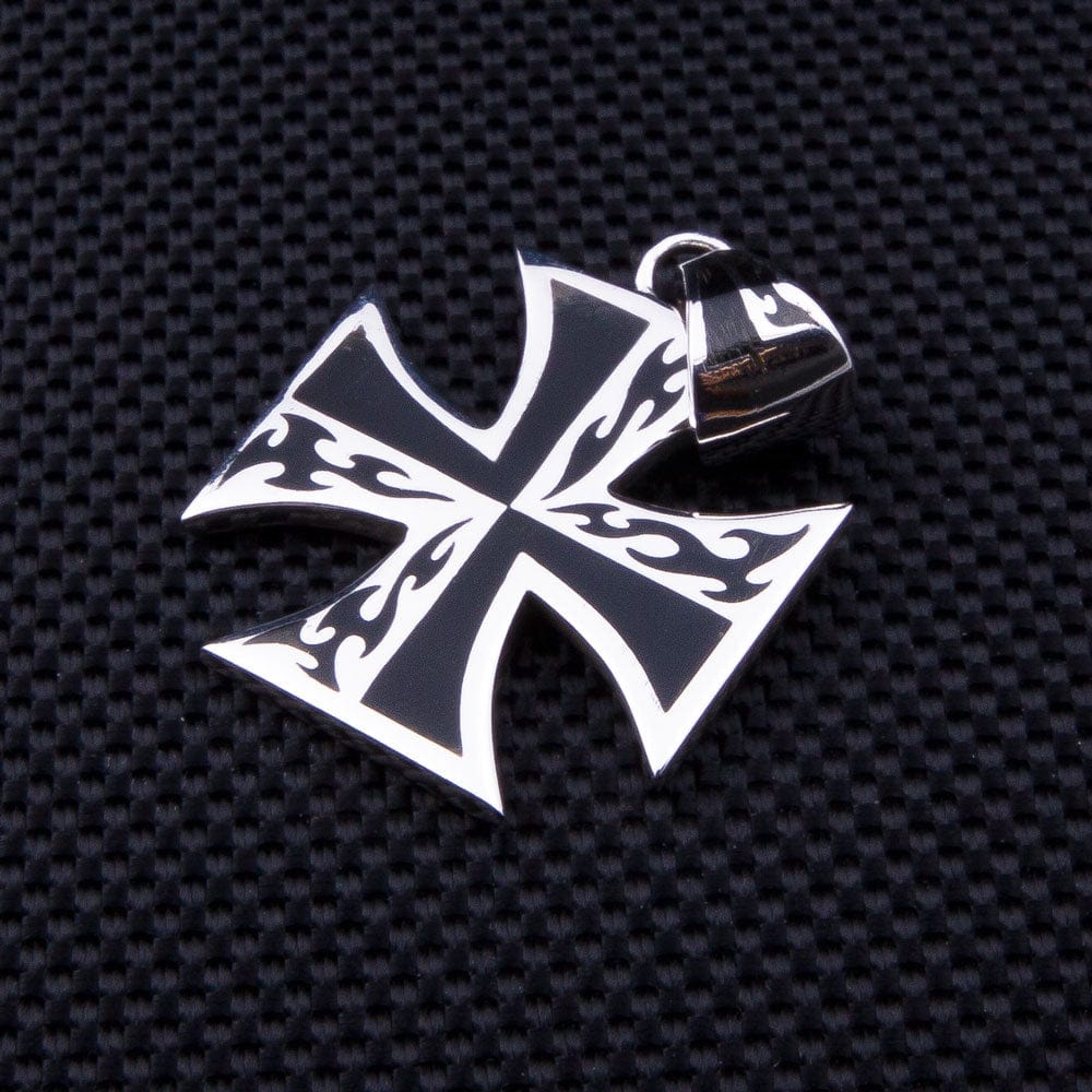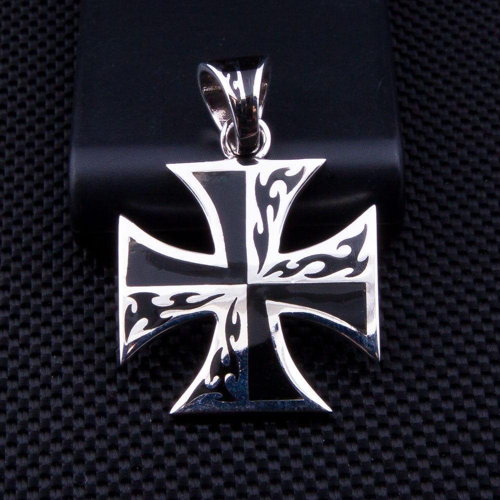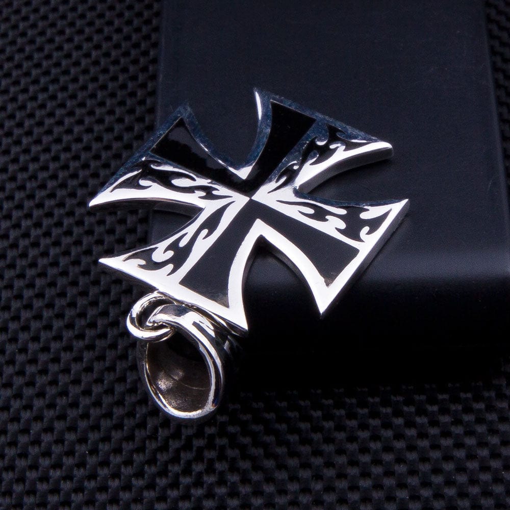 Q: What does the flame and cross combination symbolize? A: The combination of flames with the Iron Cross represents a passionate, rebellious spirit and intense personal energy. It takes the cross's traditional meaning of honor and defiance and "ignites" it with a modern, fiery attitude, making this sterling silver biker cross pendant a powerful statement piece.