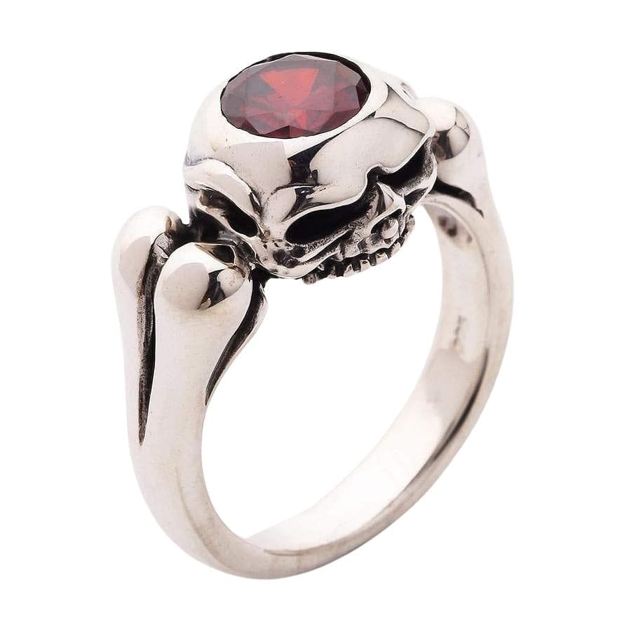 Q: What is the meaning behind a garnet and skull combination? A: The combination on this garnet bone ring is a powerful gothic symbol representing the duality of life and death. The skull signifies mortality, while the deep red garnet symbolizes passion, blood, and life force. Together, they represent a life lived passionately and fully in the face of its inevitable end.