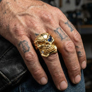 Stříbrný prsten s modrýma očima ze žlutého zlata