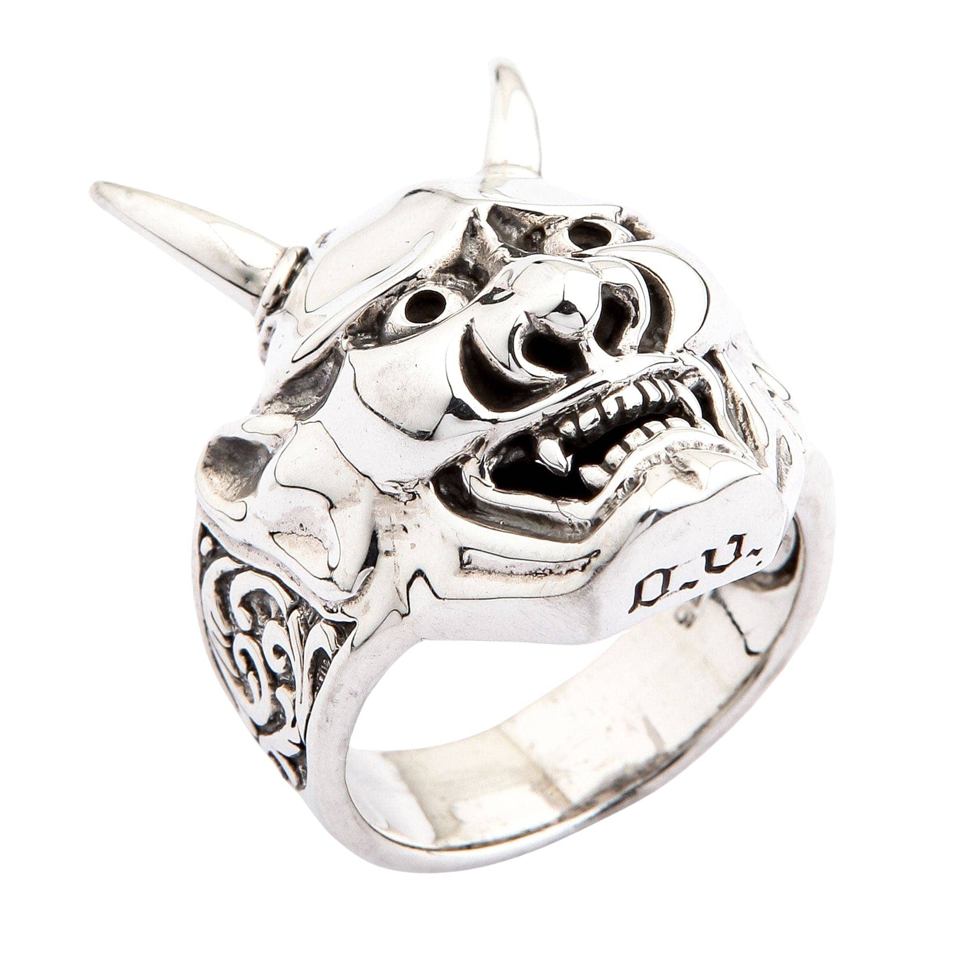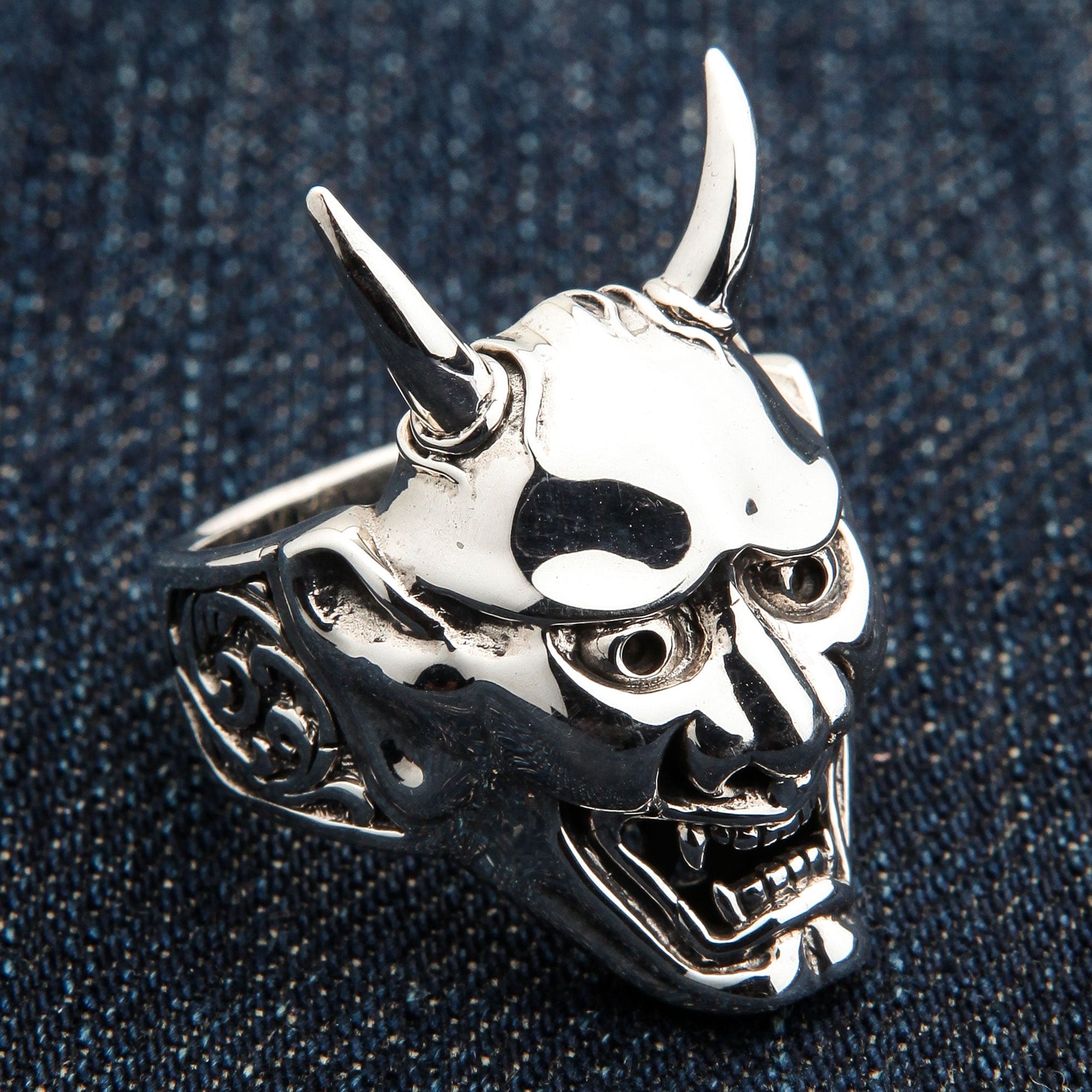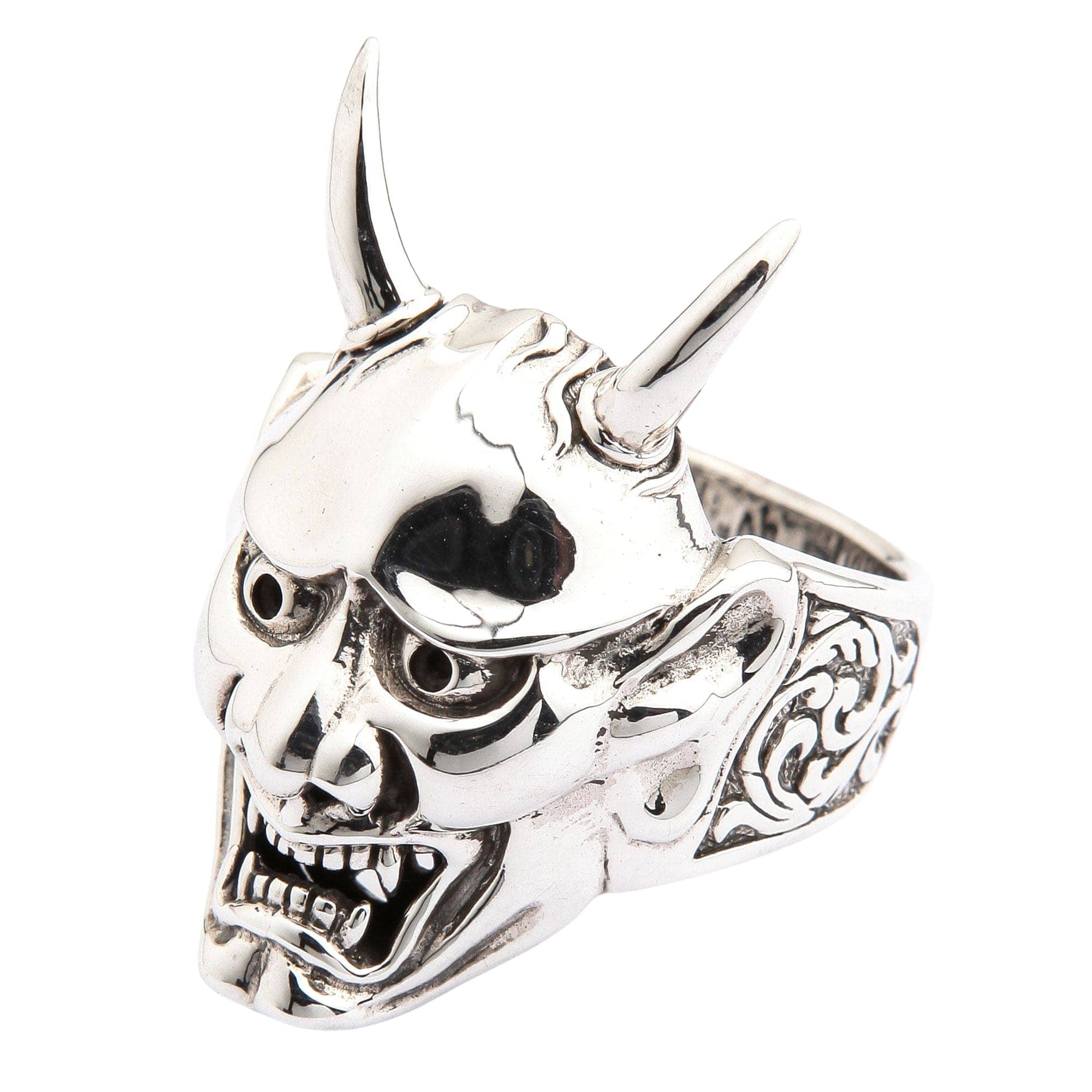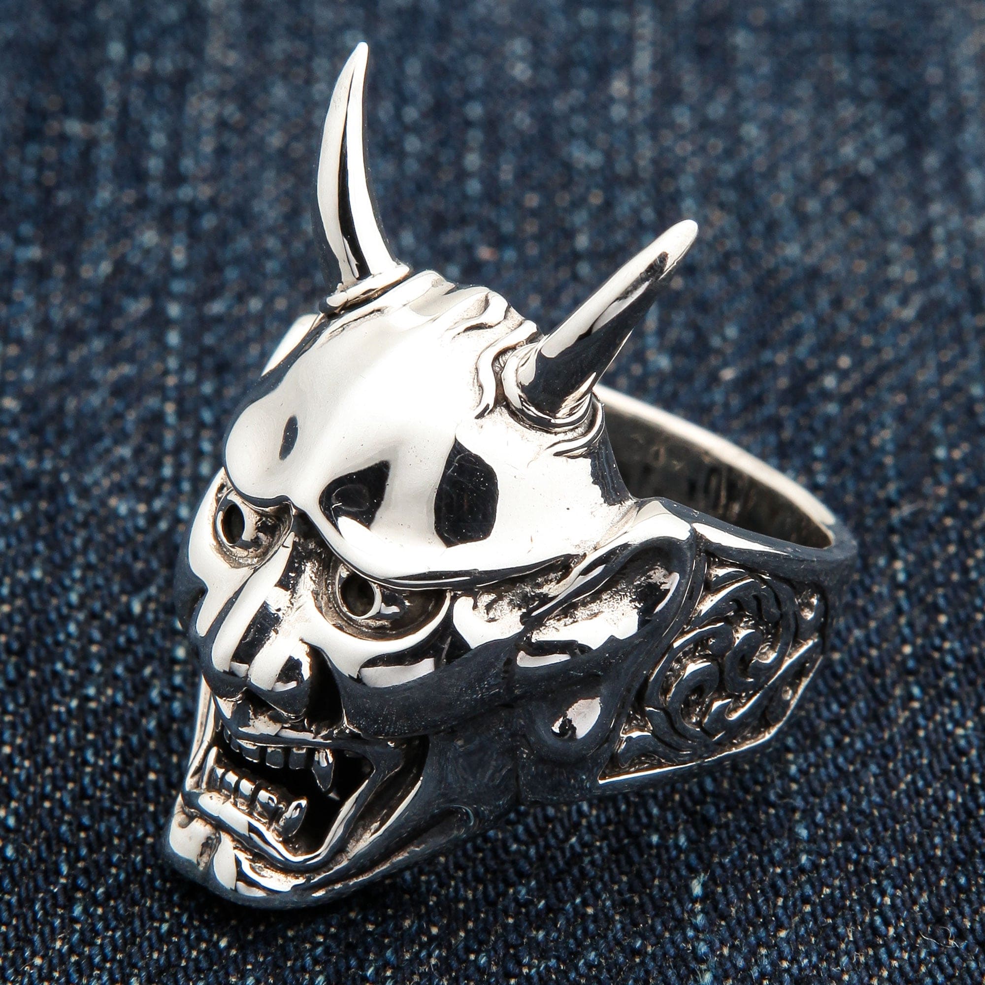 1. What does an Oni or Hannya mask ring symbolize? This ring embodies the power of the Japanese Oni demon, a symbol of a fierce warrior spirit and protection. It also channels the intense passion of the Hannya mask, which represents a soul transformed by rage and sorrow. Together, they symbolize untamable emotion and the power to ward off evil.