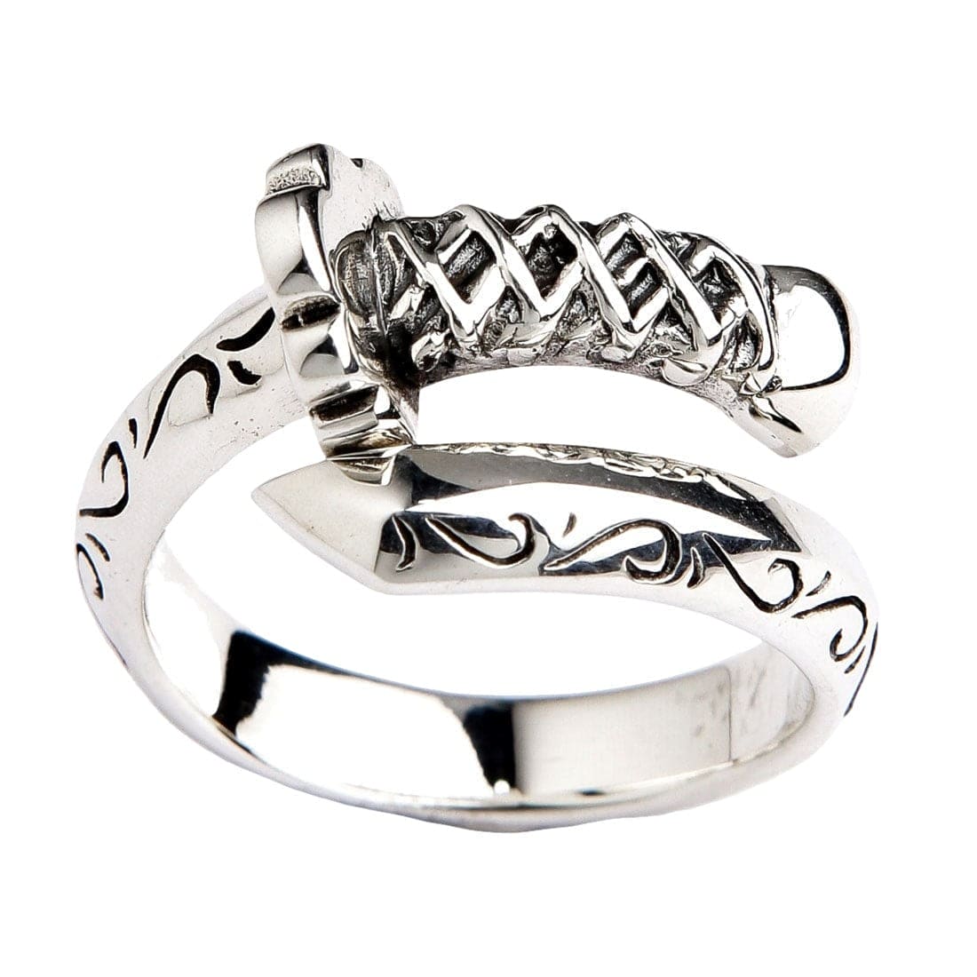 ⚔️ Japonský samurajský meč prsten ze sterlingového stříbra