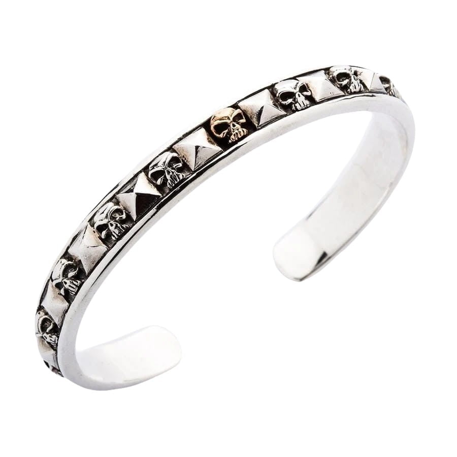 Vyjádřete svůj názor - objednejte si stříbrný náramek Skull Biker Cuff Bracelet ještě dnes!