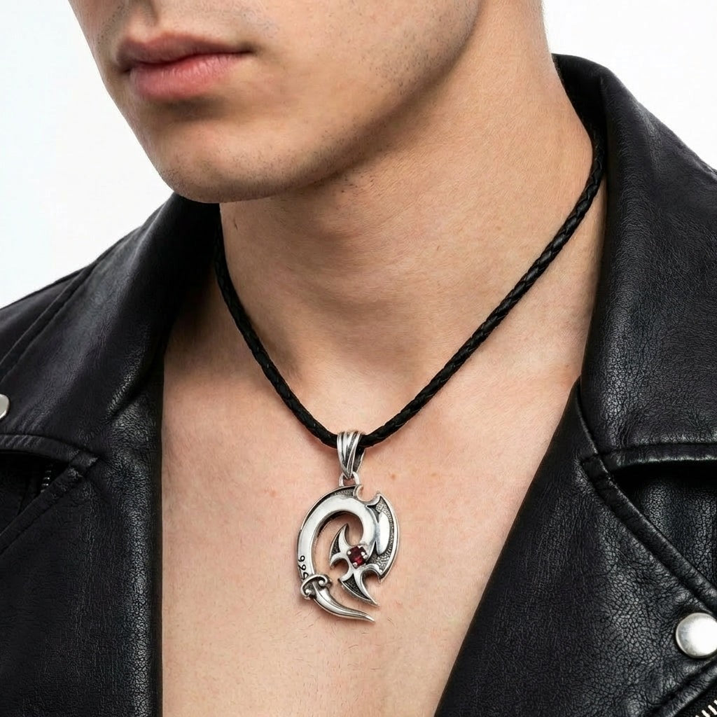 Kožený náhrdelník s přívěskem ze stříbra 925 - robustní elegance