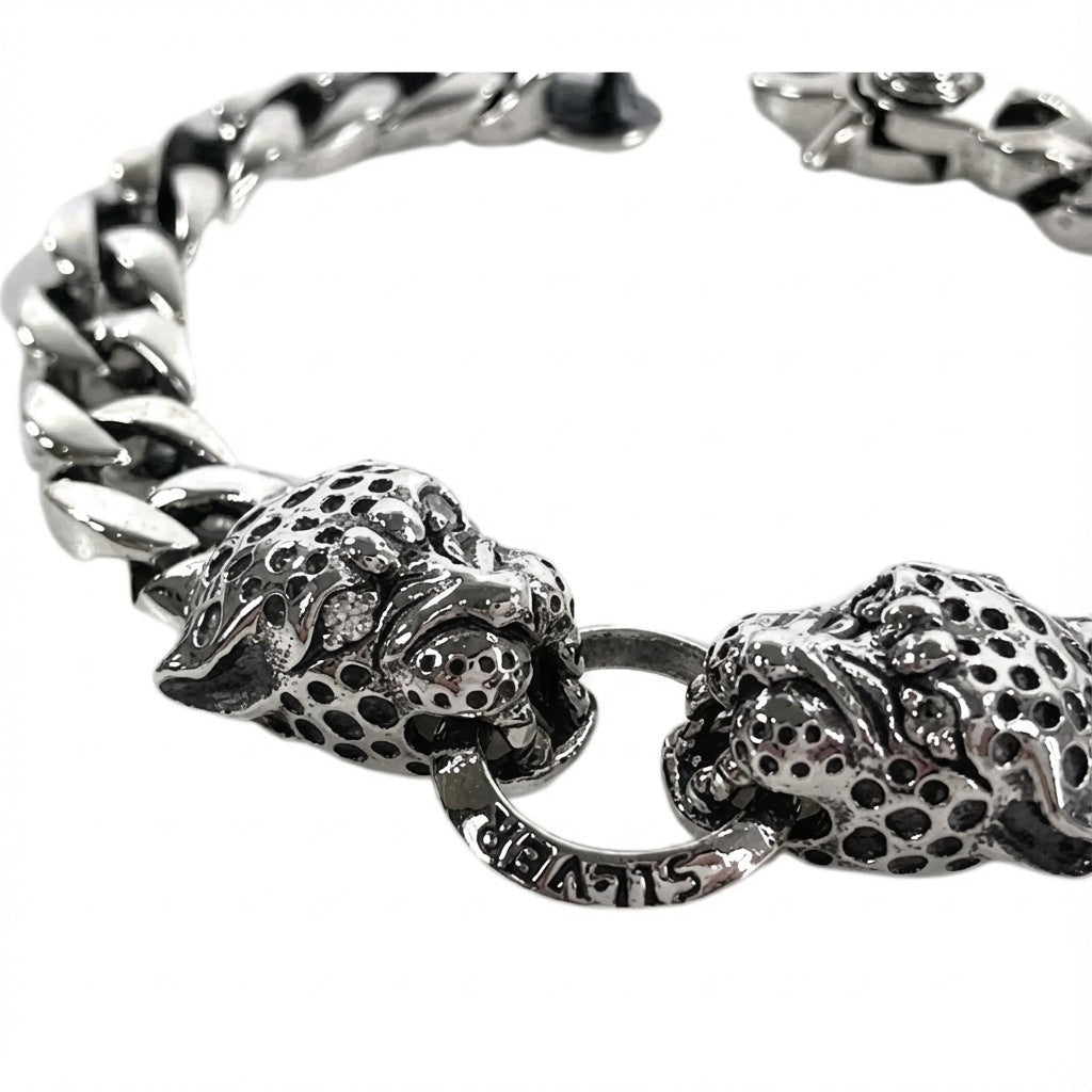 Náramek z mincovního stříbra s tygří hlavou a diamantovýma očima