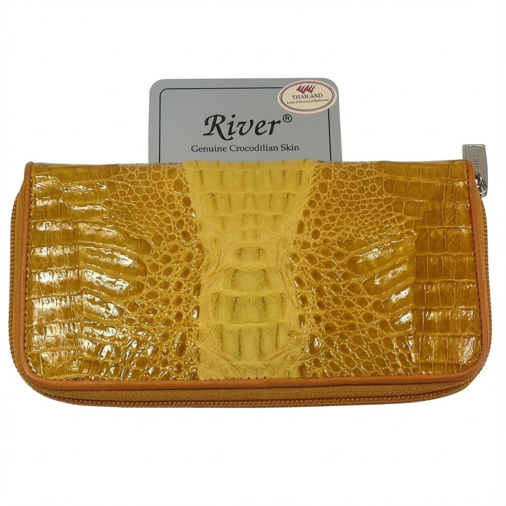 Dámská peněženka ze žluté dvoubarevné krokodýlí kůže