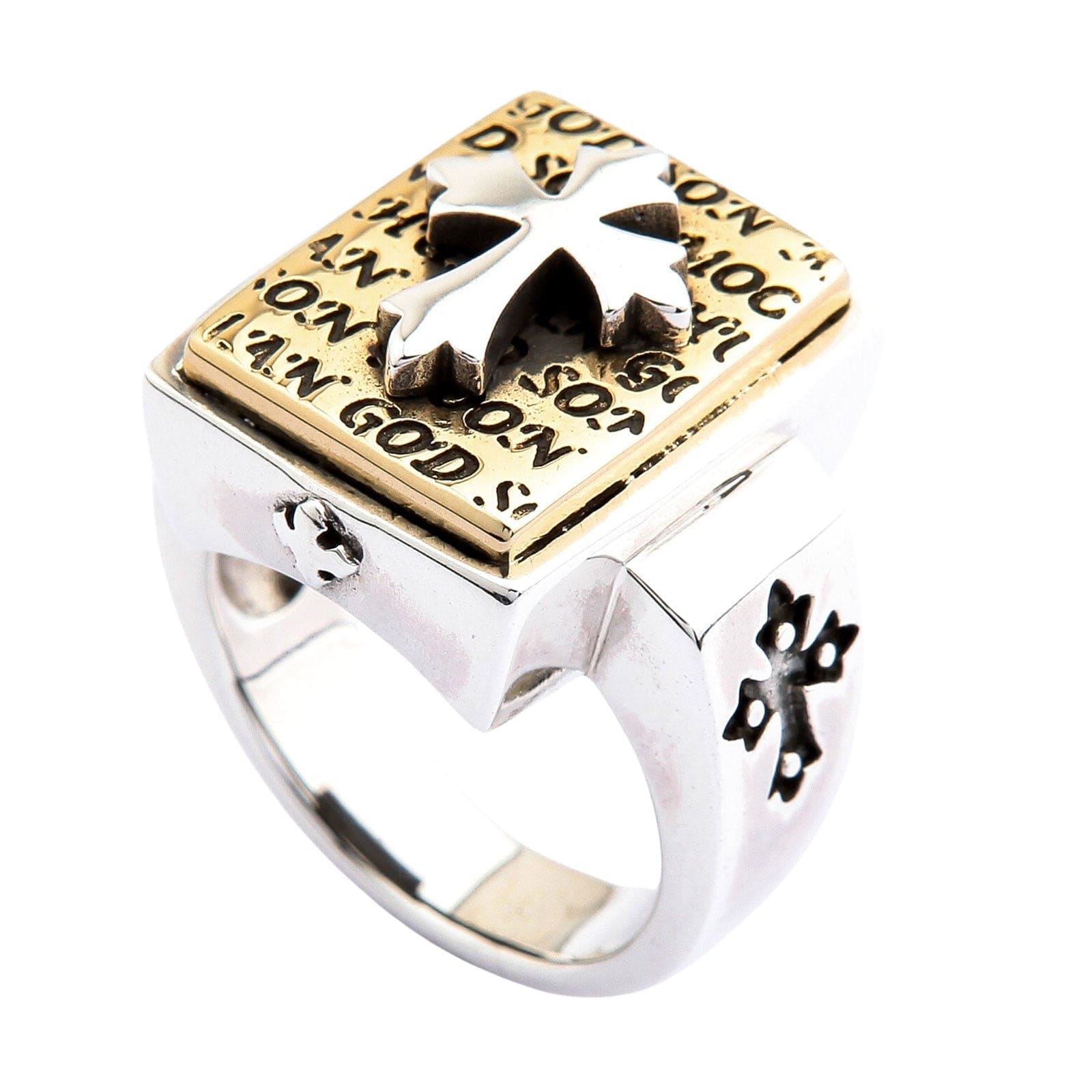 Sterlingsølv & guld kristen bibel korsring – Herre kristne smykker