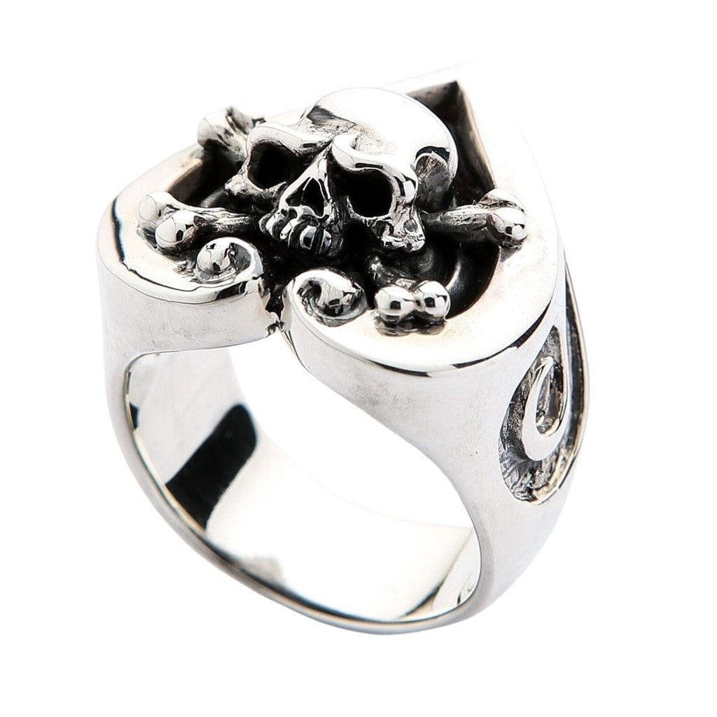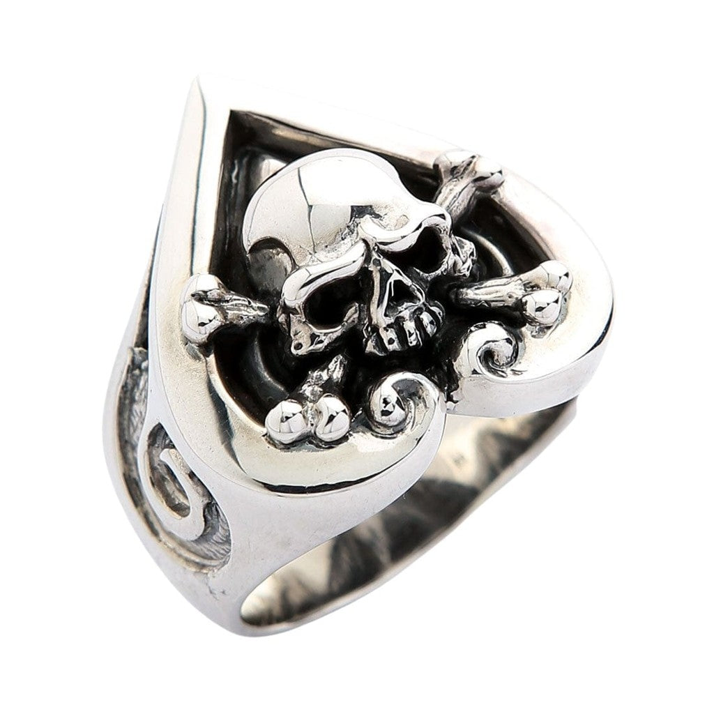 💀 Crossbones Heart Ace Sterling Silver Skull Ring