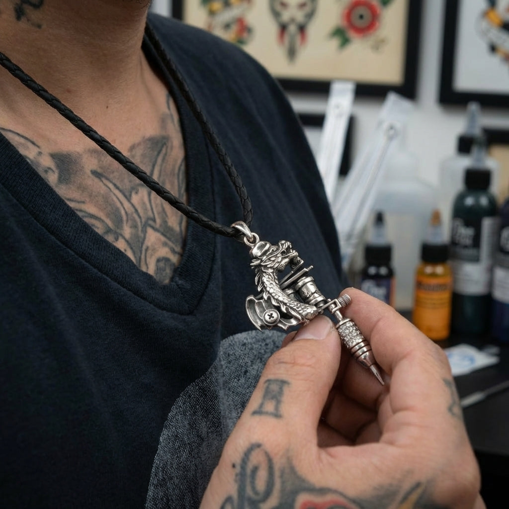 Drage Tatoveringsmaskine Maskinpistol Vedhæng i Sterlingsølv