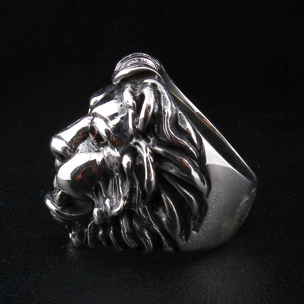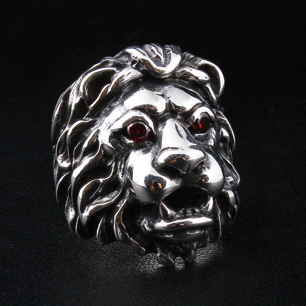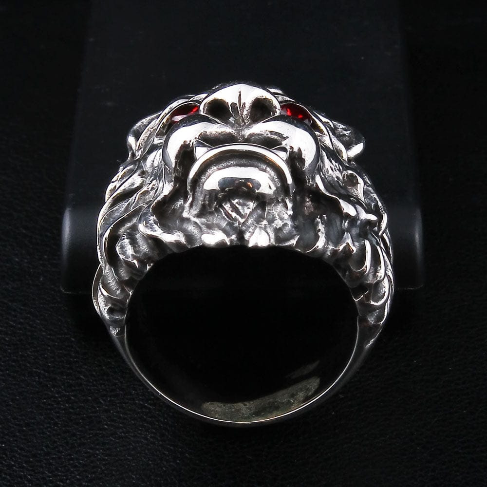 Rød Granat Øjne Sterling Sølv Løve Herre Ring