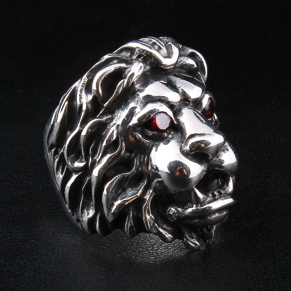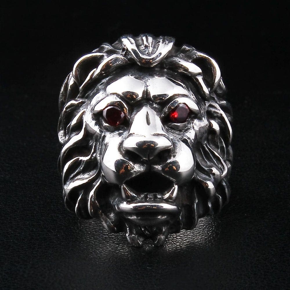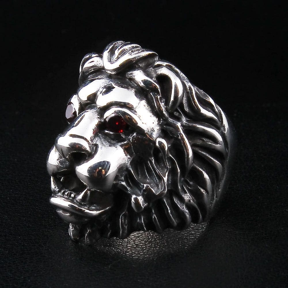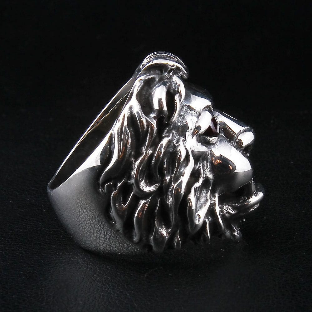 Rød Granat Øjne Sterling Sølv Løve Herre Ring