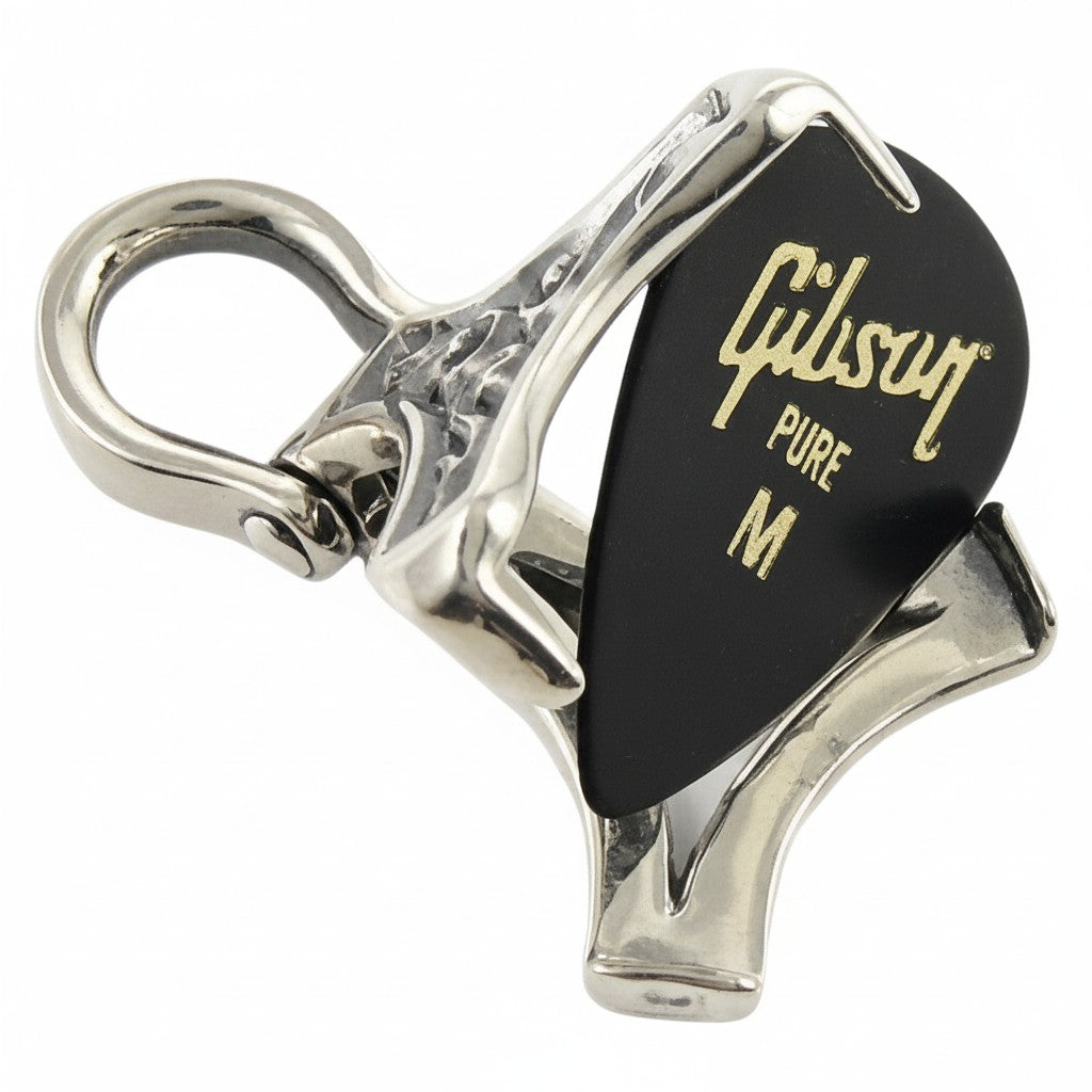 🎸 Funktionelt medaljon-design: Et genialt designet, hængslet bur-holder, der åbner op og sikkert opbevarer dit standard-guitarplekter, så du altid er klar til at spille.