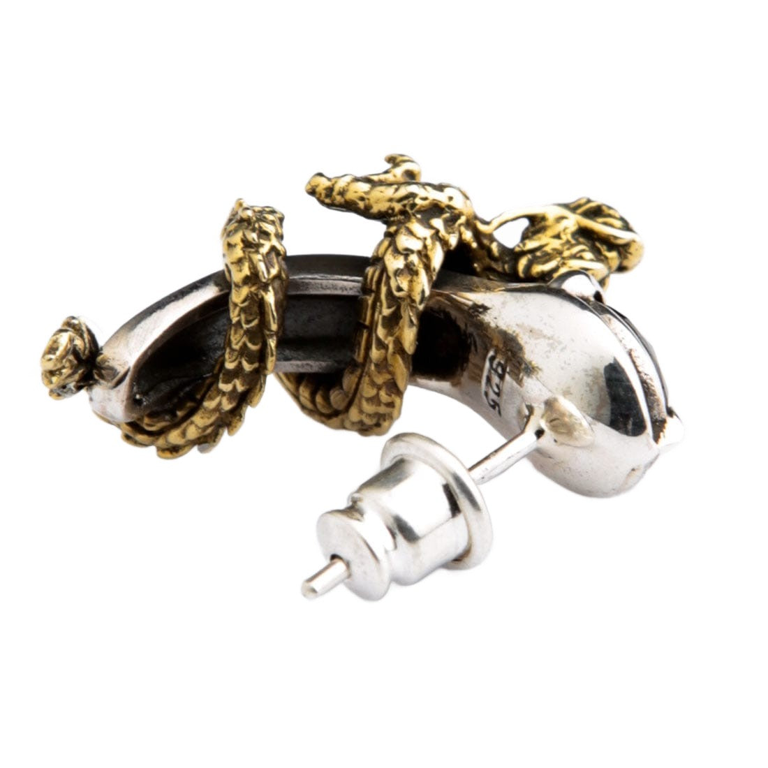 Drachen-Ohrstecker aus Silber und Messing für Männer
