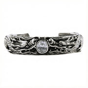 Sterling Silver Double Dragon Cuff Bracelet with Clear Stone