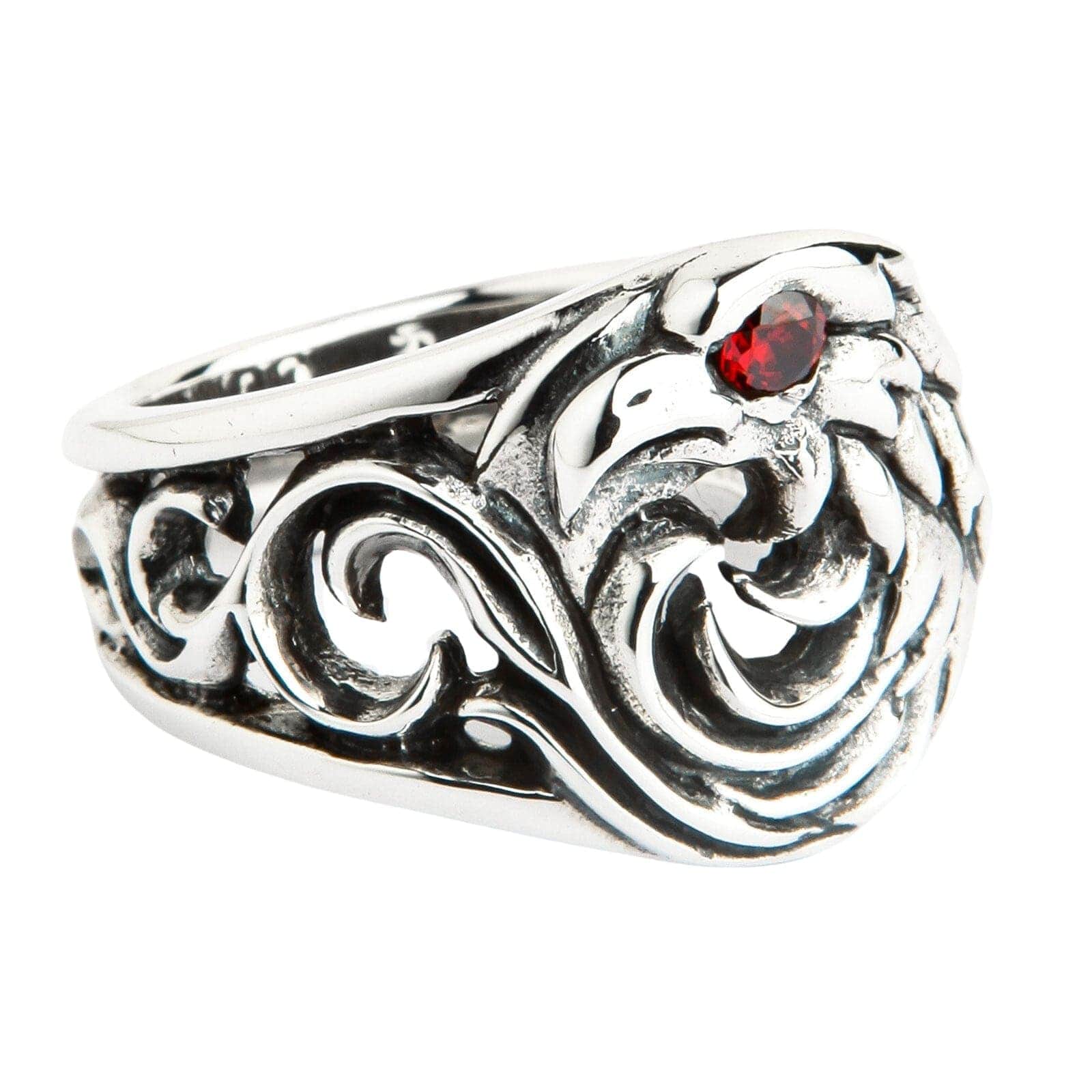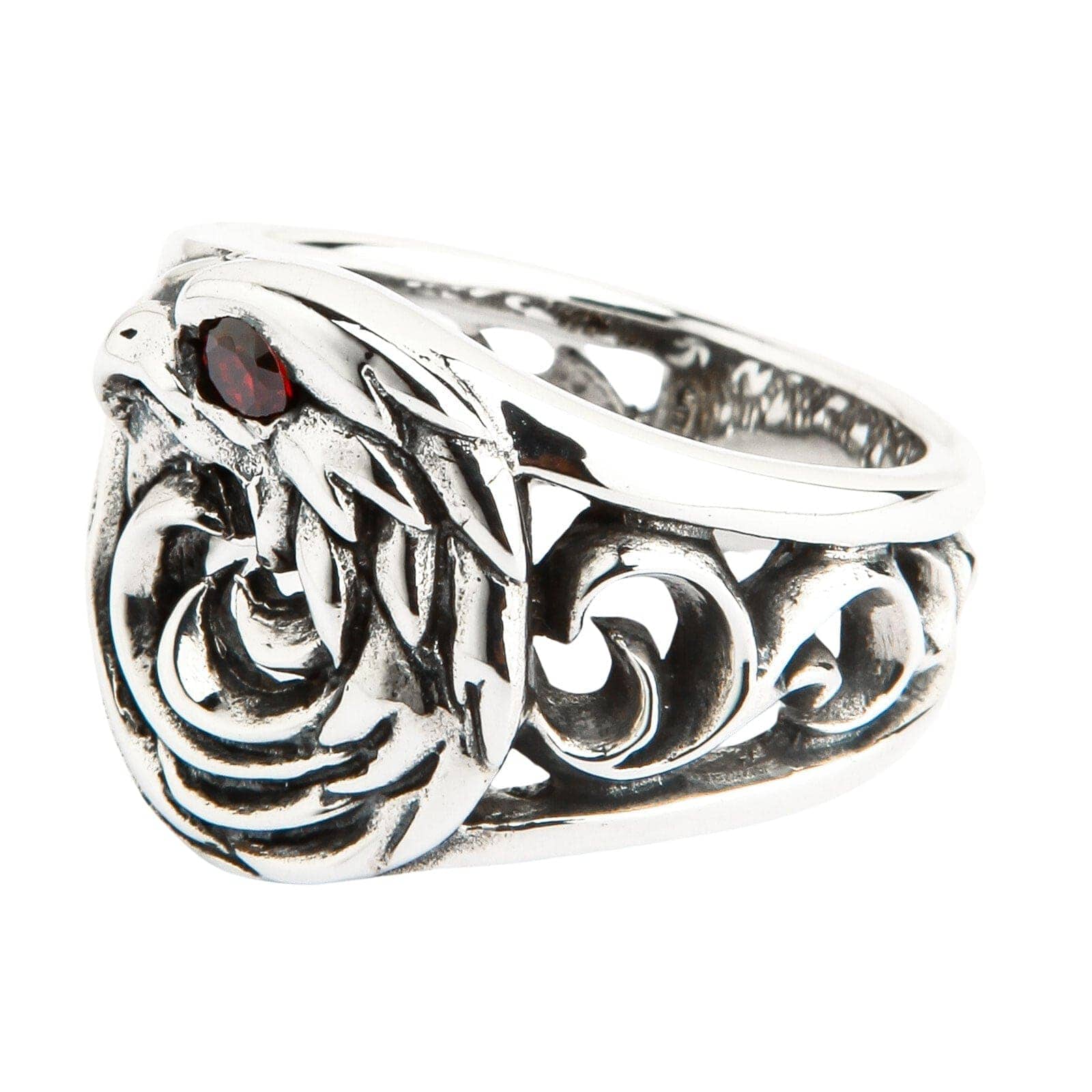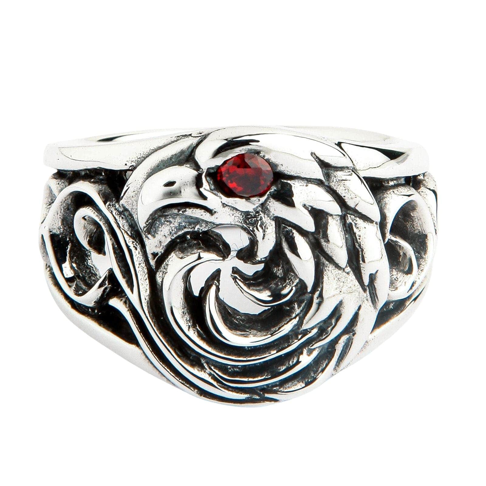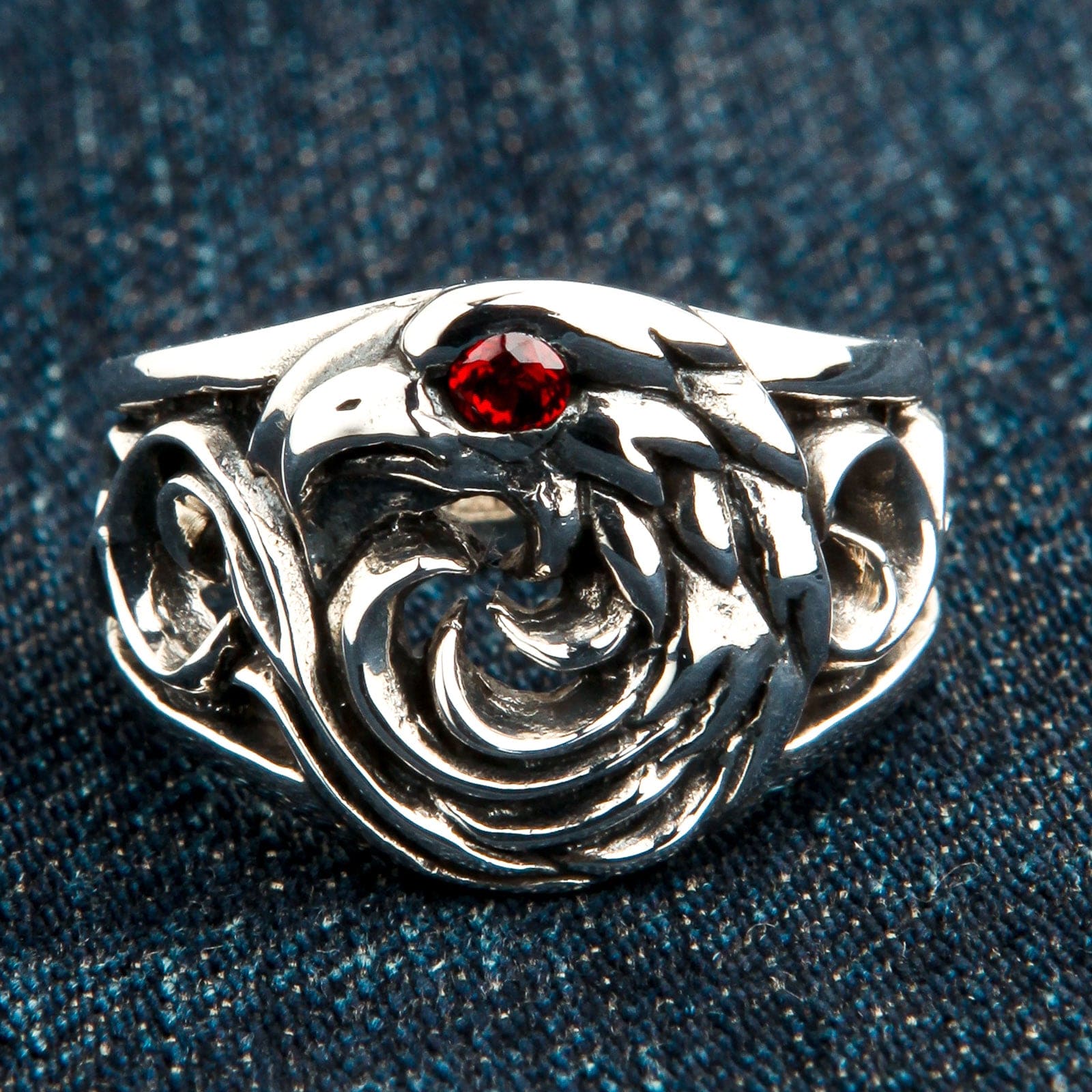 Adlerring für Herren – Sterlingsilber-Adlerring mit rotem Auge