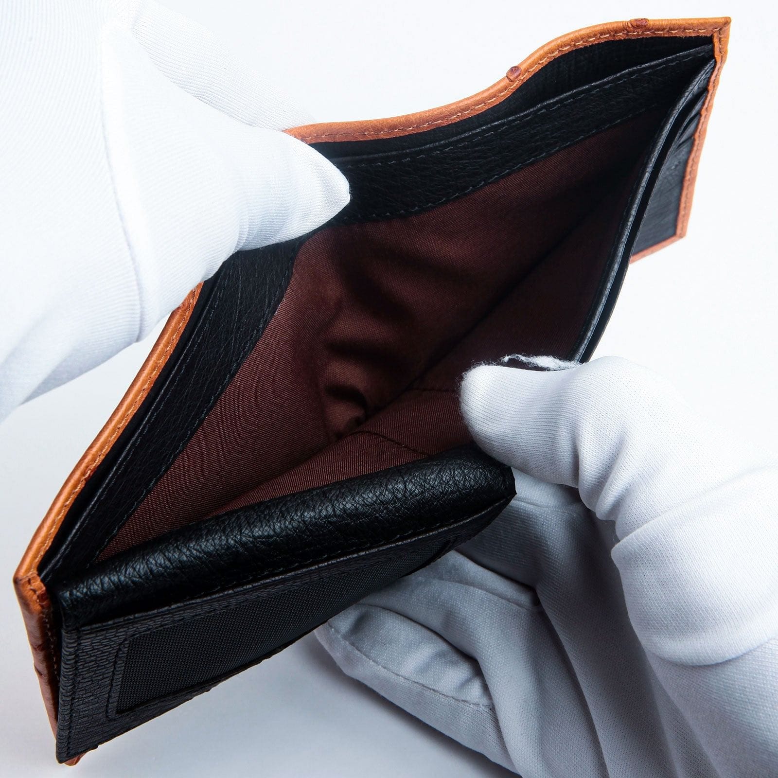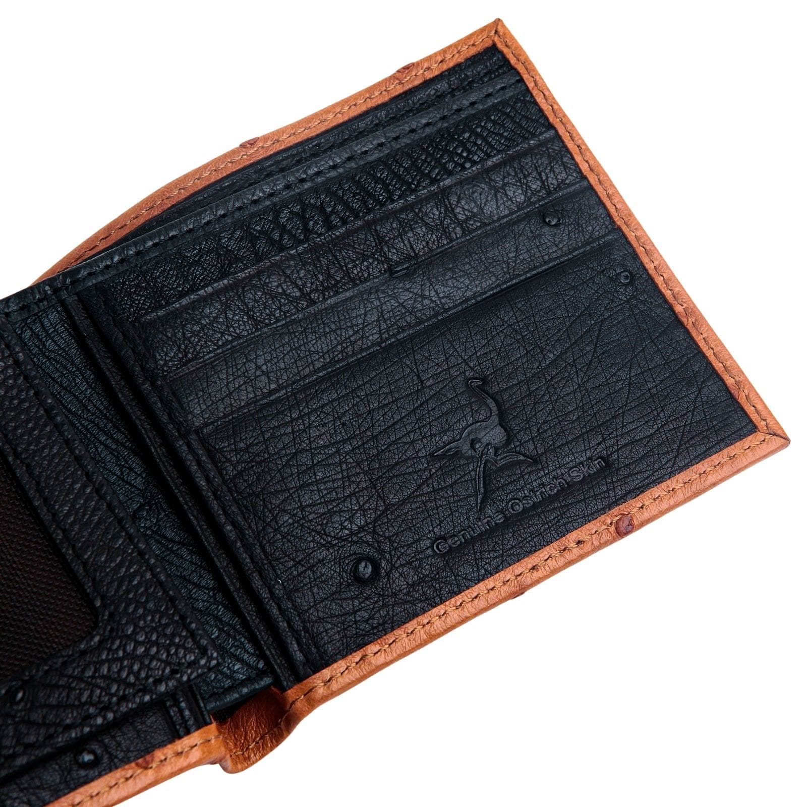 Der Stempel „Echtes Straußenleder“ im Inneren garantiert die Echtheit dieser hochwertigen Geldbörse aus exotischem Leder . Straußenleder besticht nicht nur durch sein atemberaubendes Aussehen, sondern auch durch seine außergewöhnliche Langlebigkeit – es zählt zu den robustesten Lederarten und fühlt sich dennoch unglaublich weich an. Diese luxuriöse Ledergeldbörse ist auf Langlebigkeit ausgelegt und entwickelt mit der Zeit eine wunderschöne, individuelle Patina.