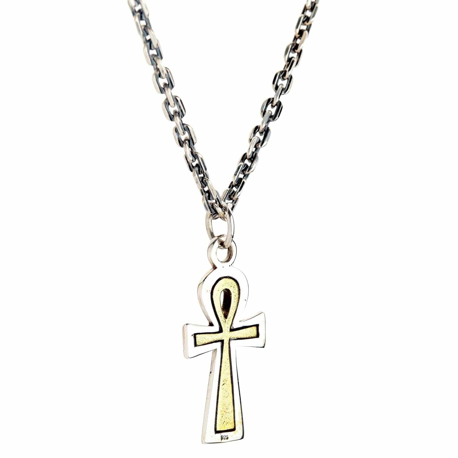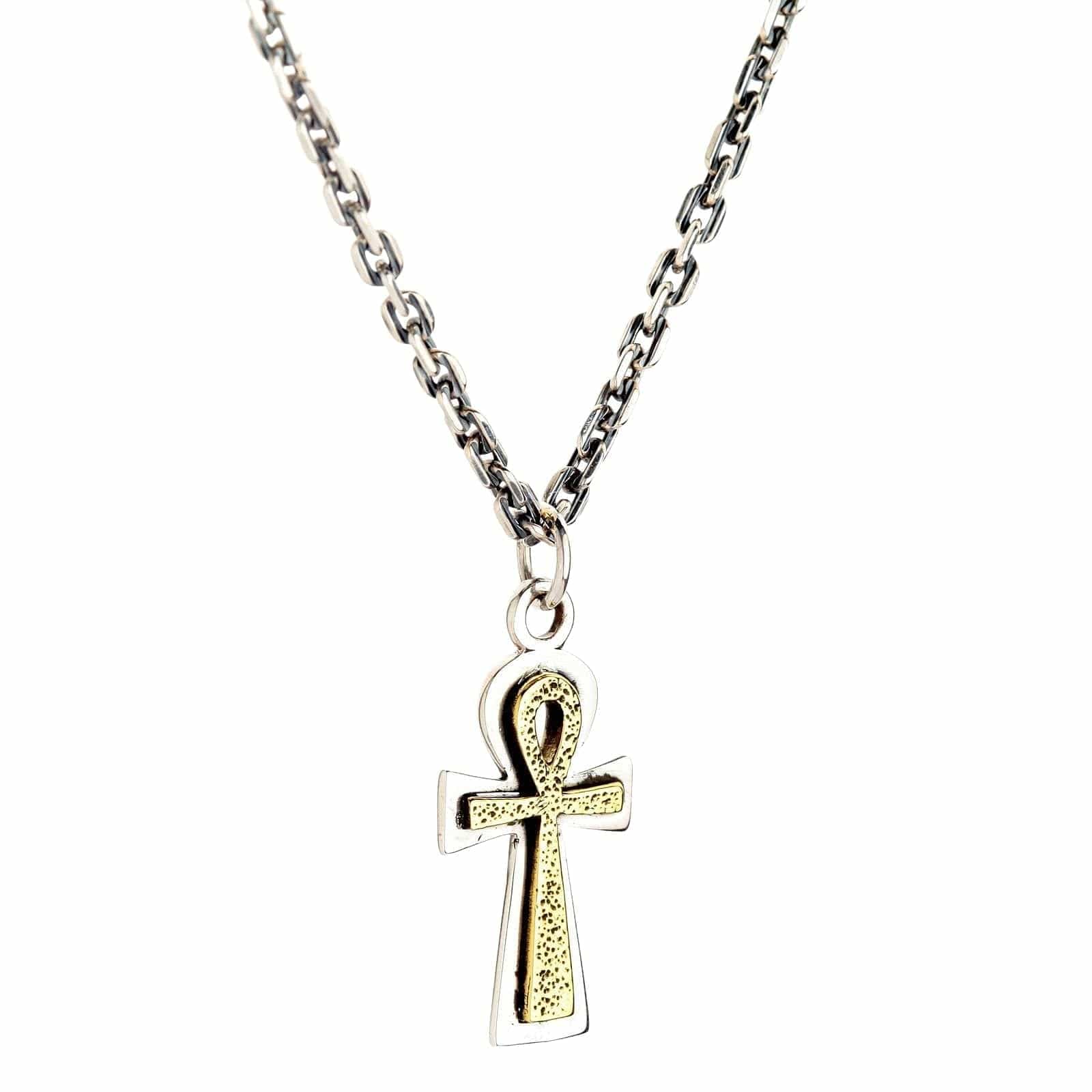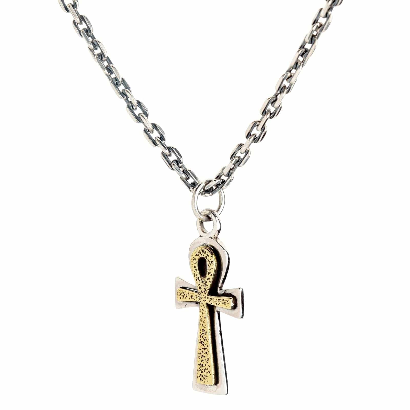 Ankh-Anhänger aus Gelbgold und Sterlingsilber (925) – Ankh-Symbol-Halskette