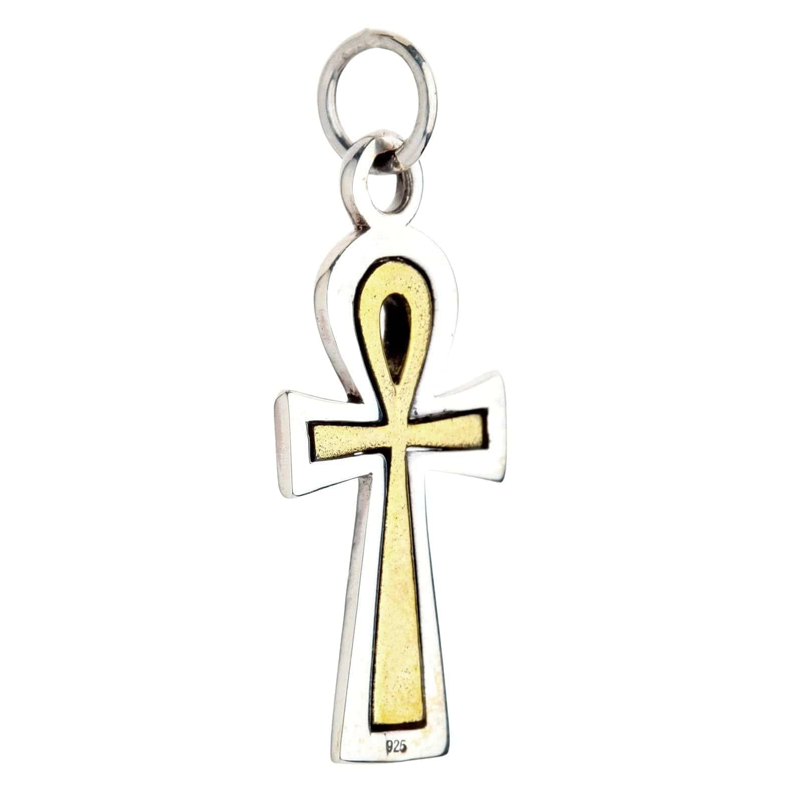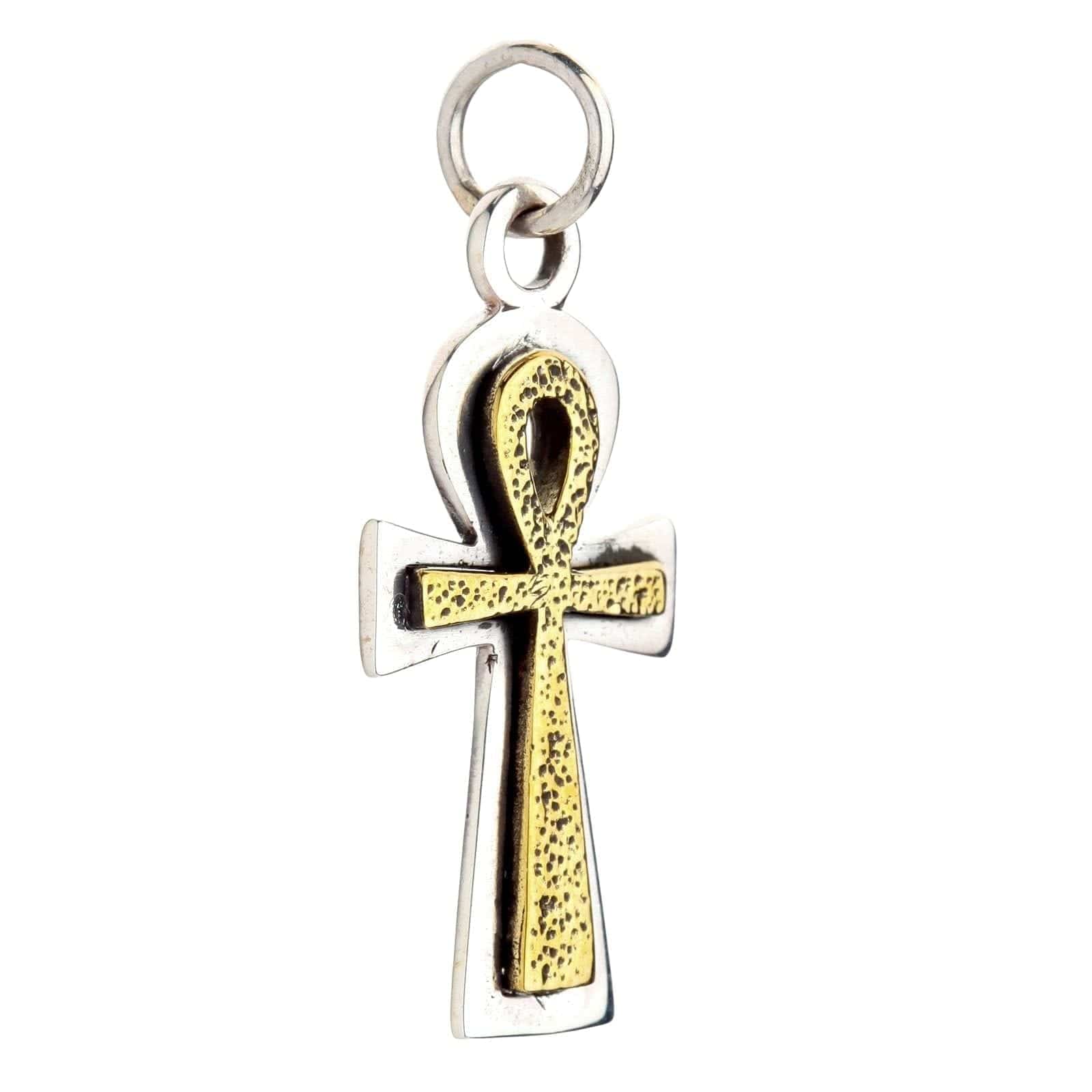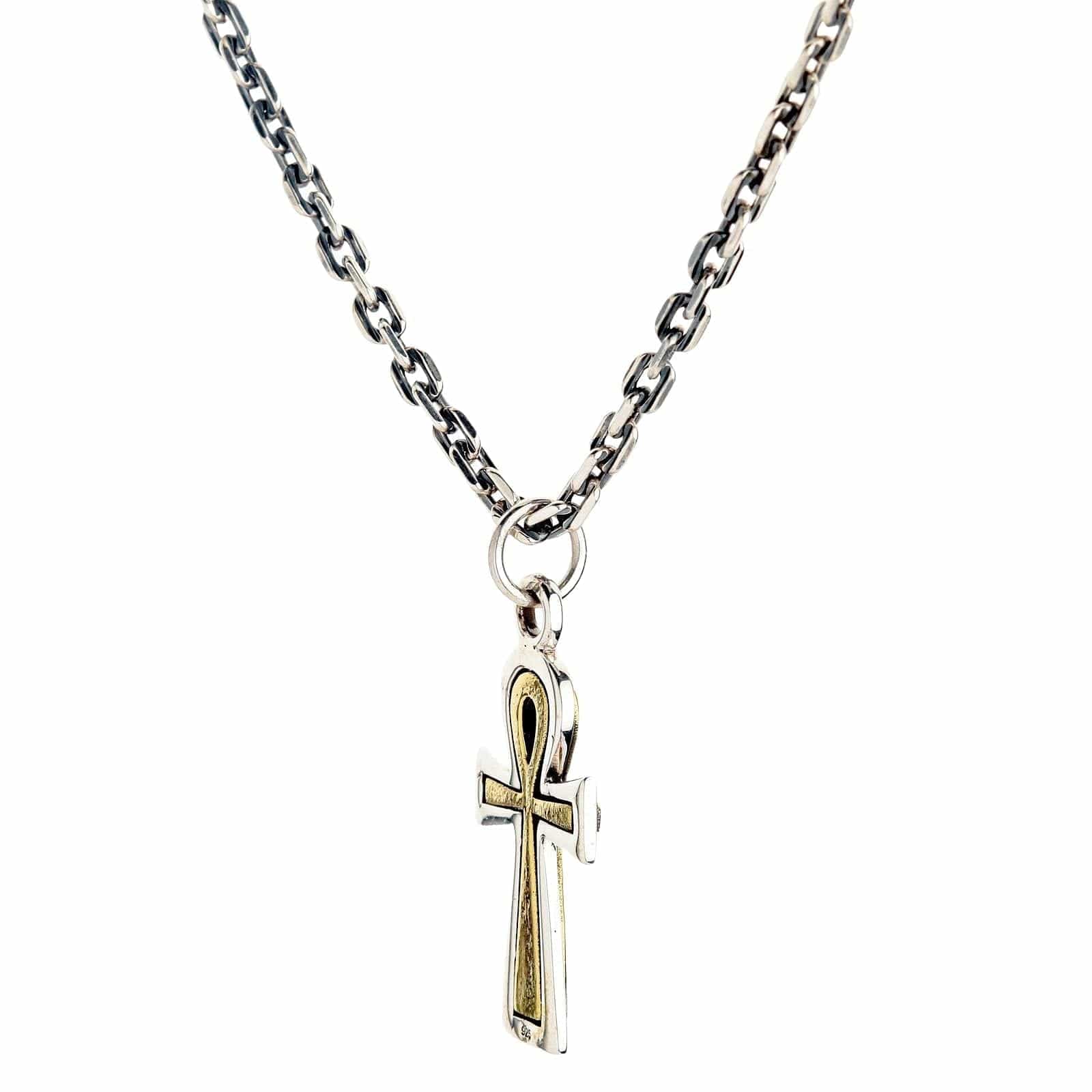 Ankh-Anhänger aus Gelbgold und Sterlingsilber (925) – Ankh-Symbol-Halskette