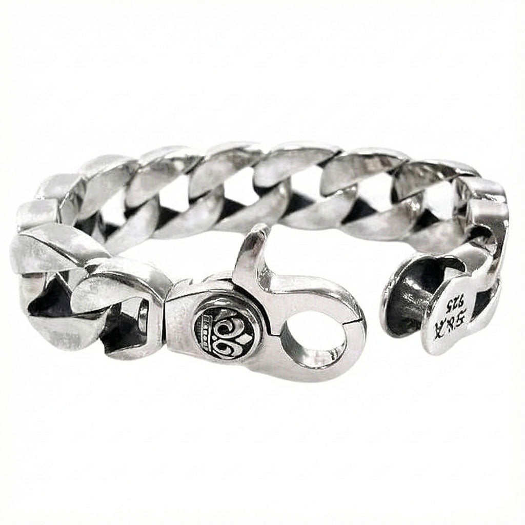 Pulsera de Biker para Hombre de Plata Esterlina Cubana con Corona