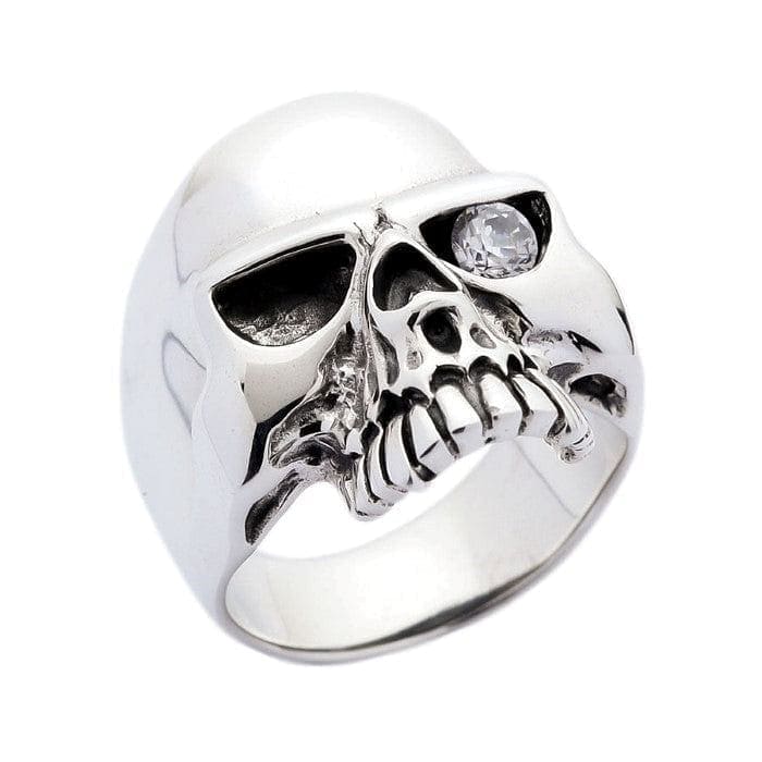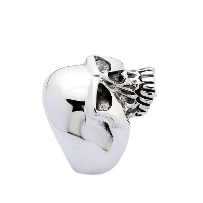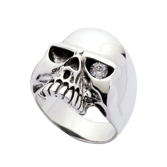Anillo de Calavera con Ojo de Diamante de Plata Esterlina