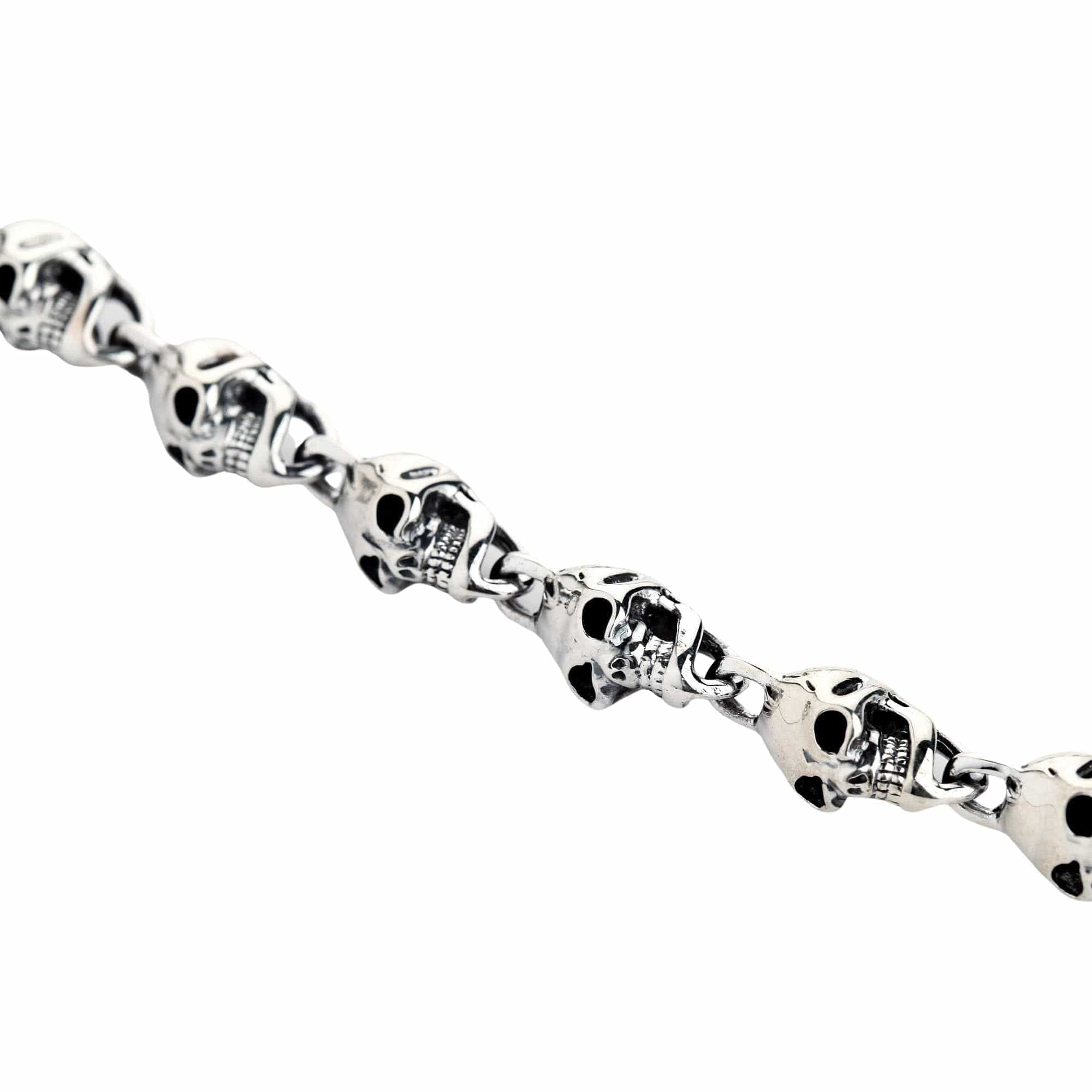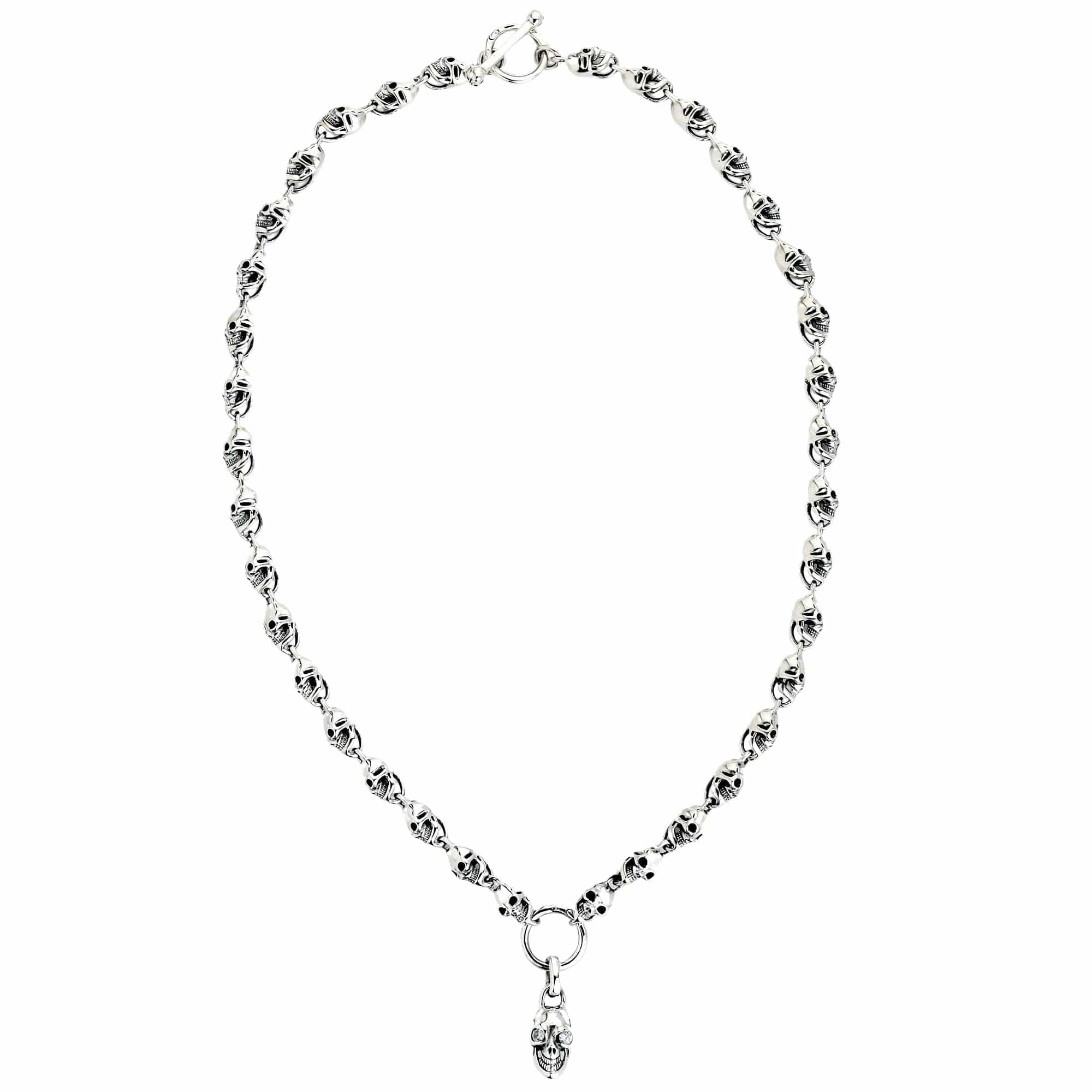 Dimensiones: Longitud del collar de 25 pulgadas (63,5 cm); los eslabones individuales de calavera miden 10 mm de ancho.