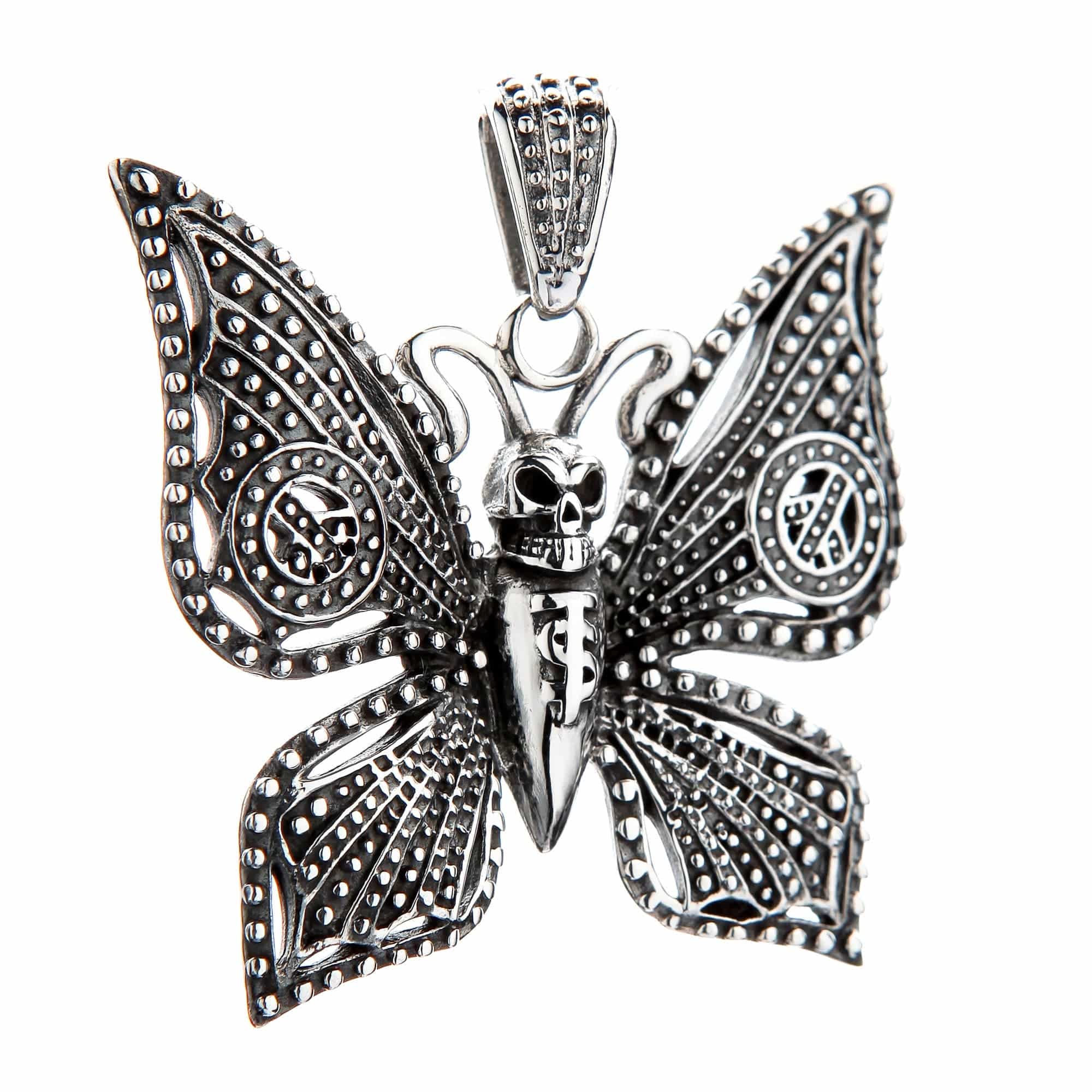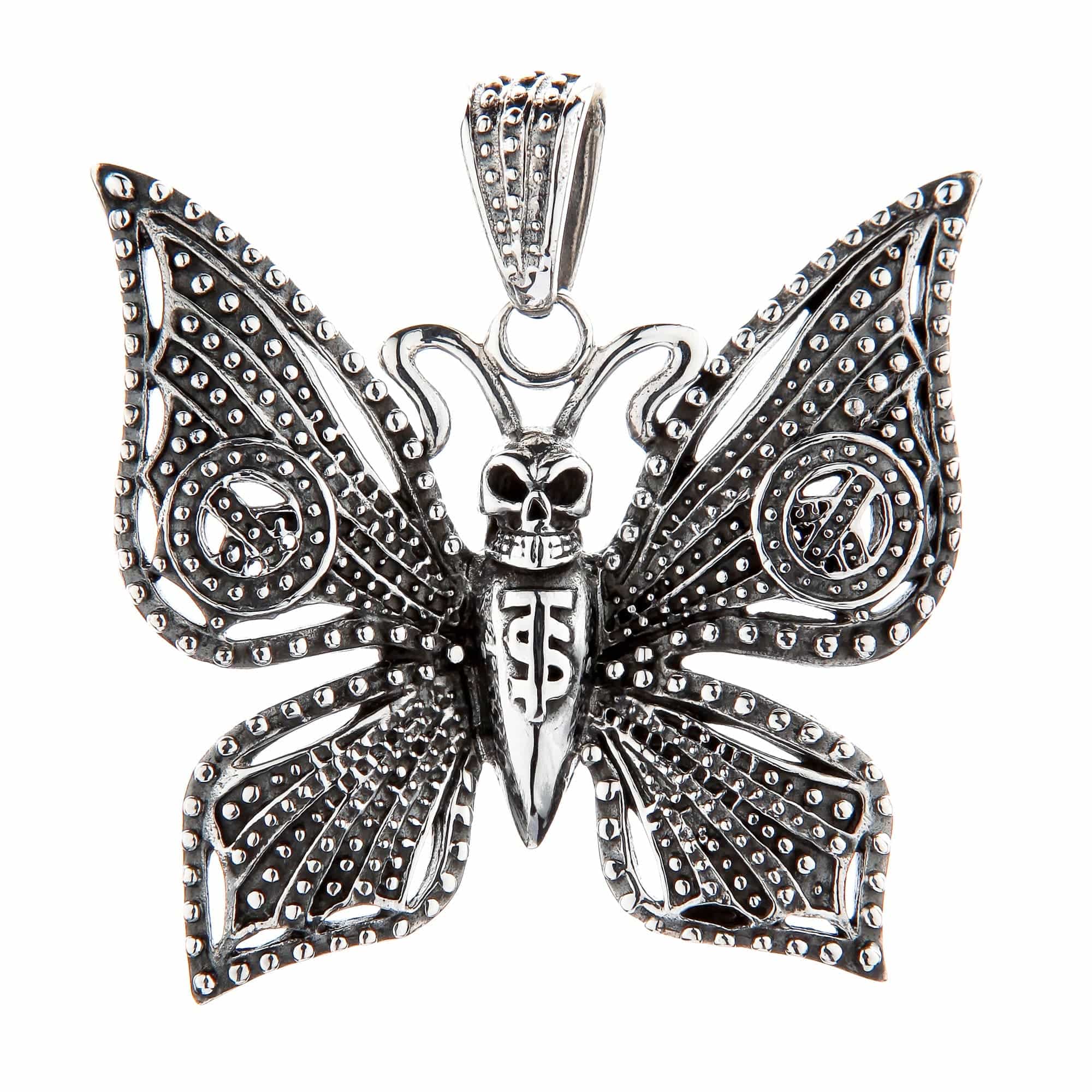Descubre una obra maestra de elegancia macabra con este intrincado colgante de polilla mariposa gótica. No es solo una joya; es una profunda declaración sobre el hermoso e inevitable ciclo de la vida y la muerte. Forjado en plata de ley maciza y pesada, capta un equilibrio delicado pero poderoso, convirtiéndose en un centro de atención único para cualquier colección gótica o motera que celebre la belleza en la oscuridad.