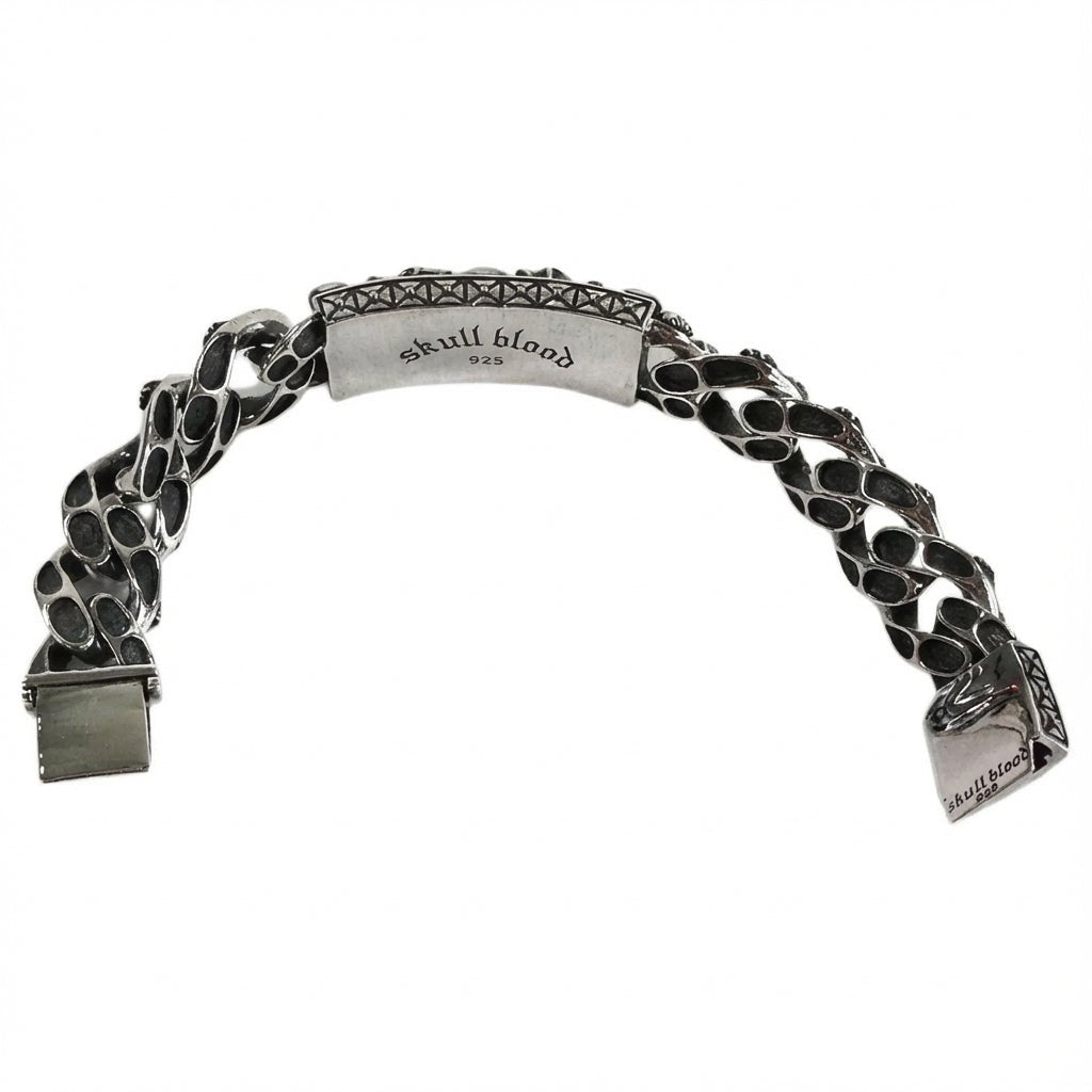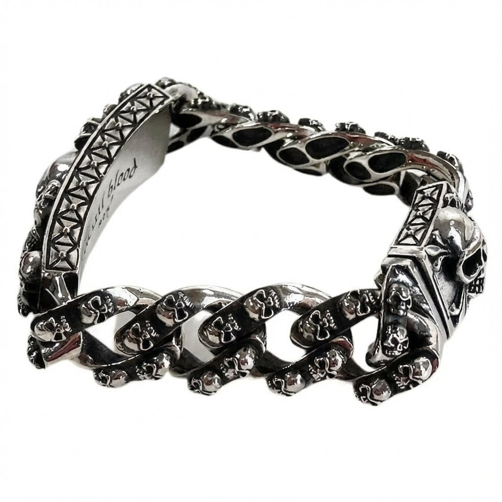 💀 Pulsera de Identificación de Biker de Plata de Ley con Calavera Maciza – Audaz, Gótica e Inspirada en el Rock