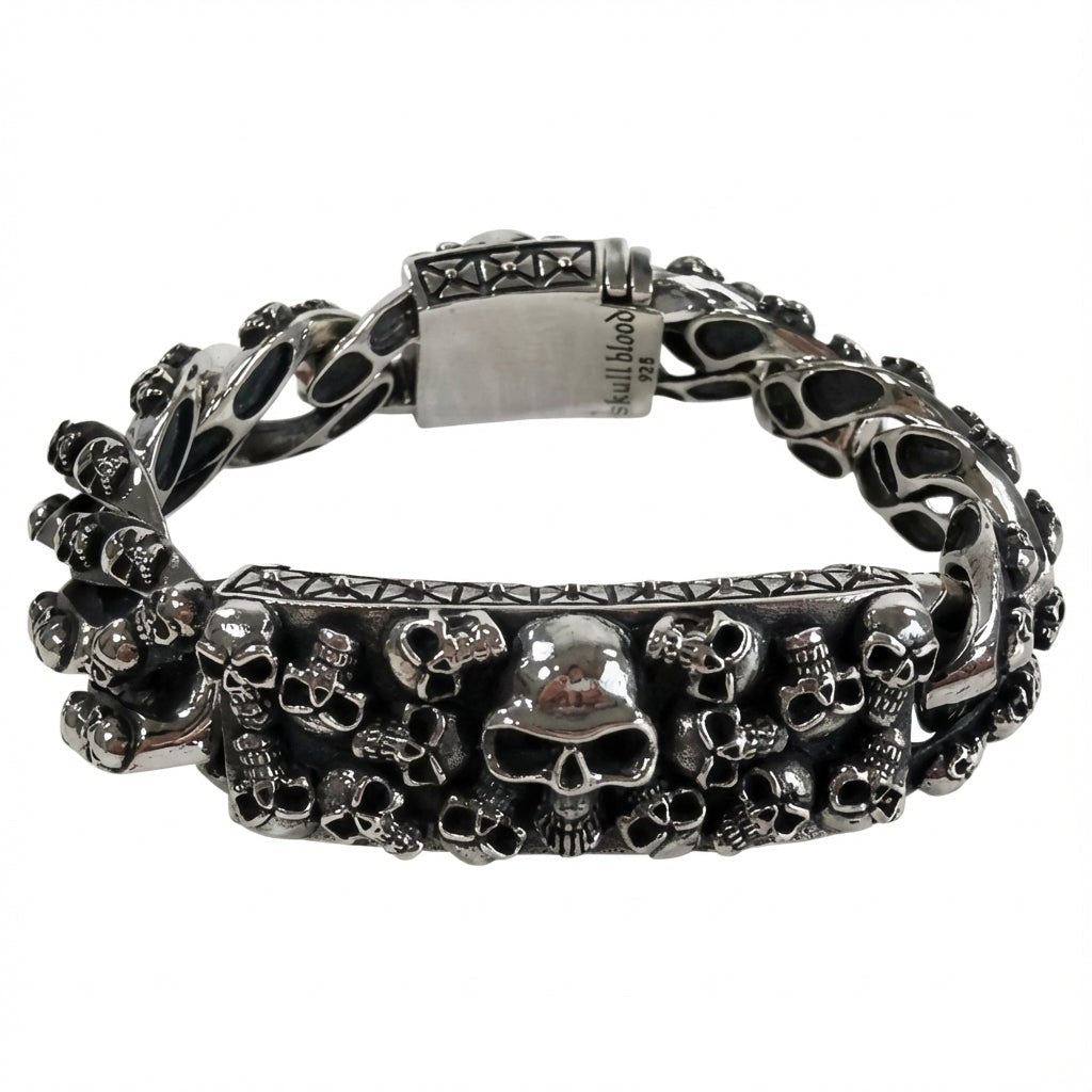 Pulsera de Identificación para Motociclista de Plata Esterlina con Calavera Pesada
