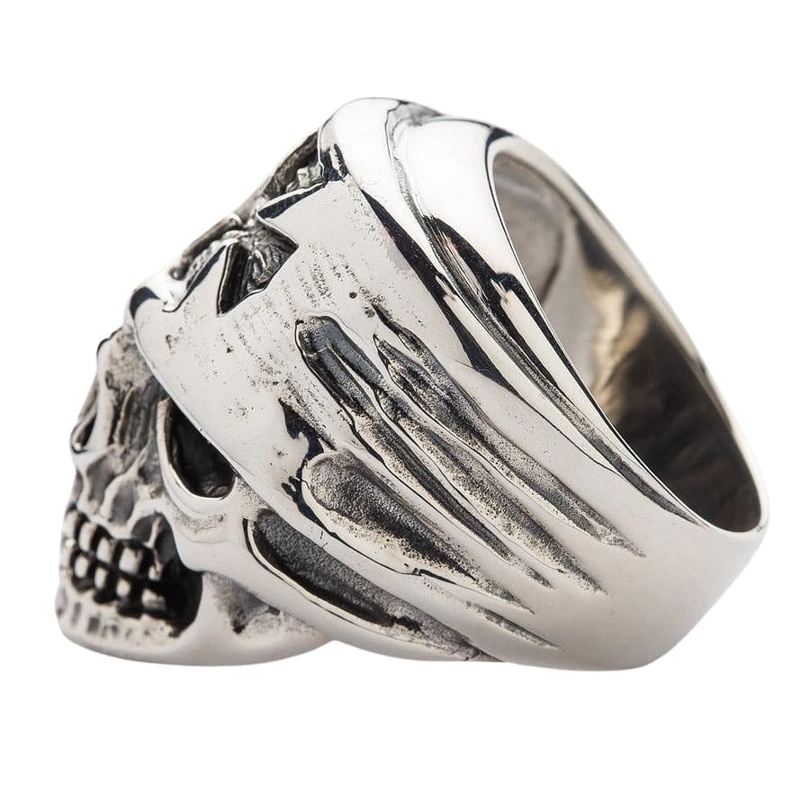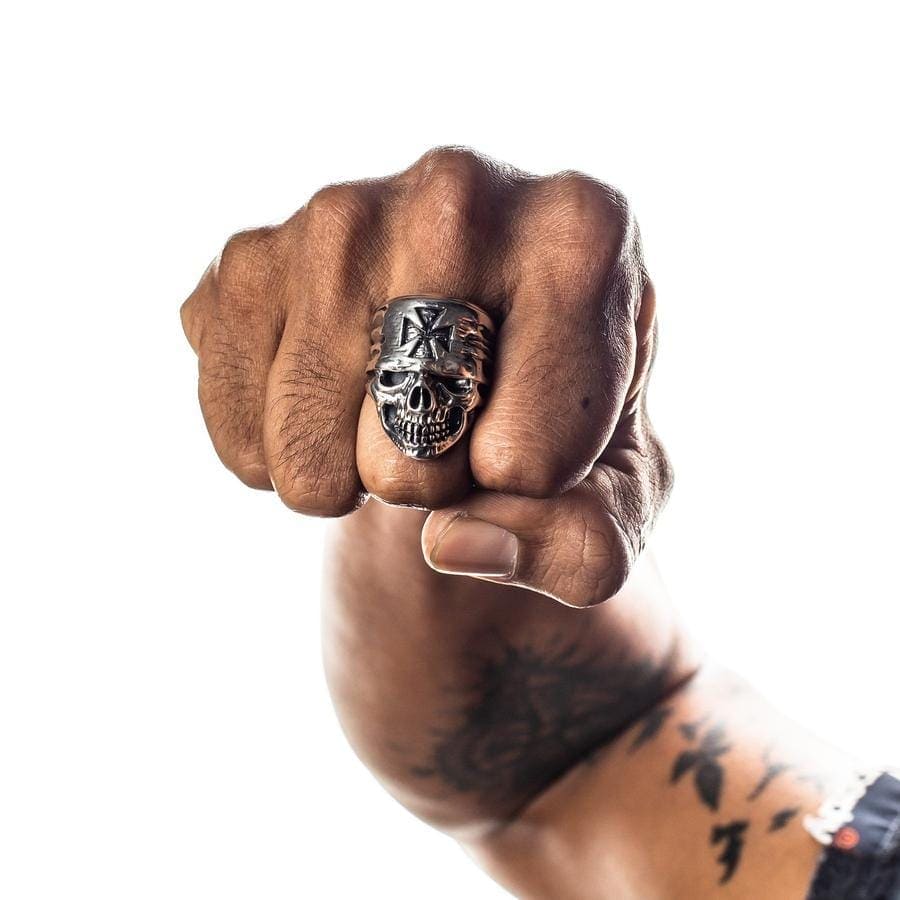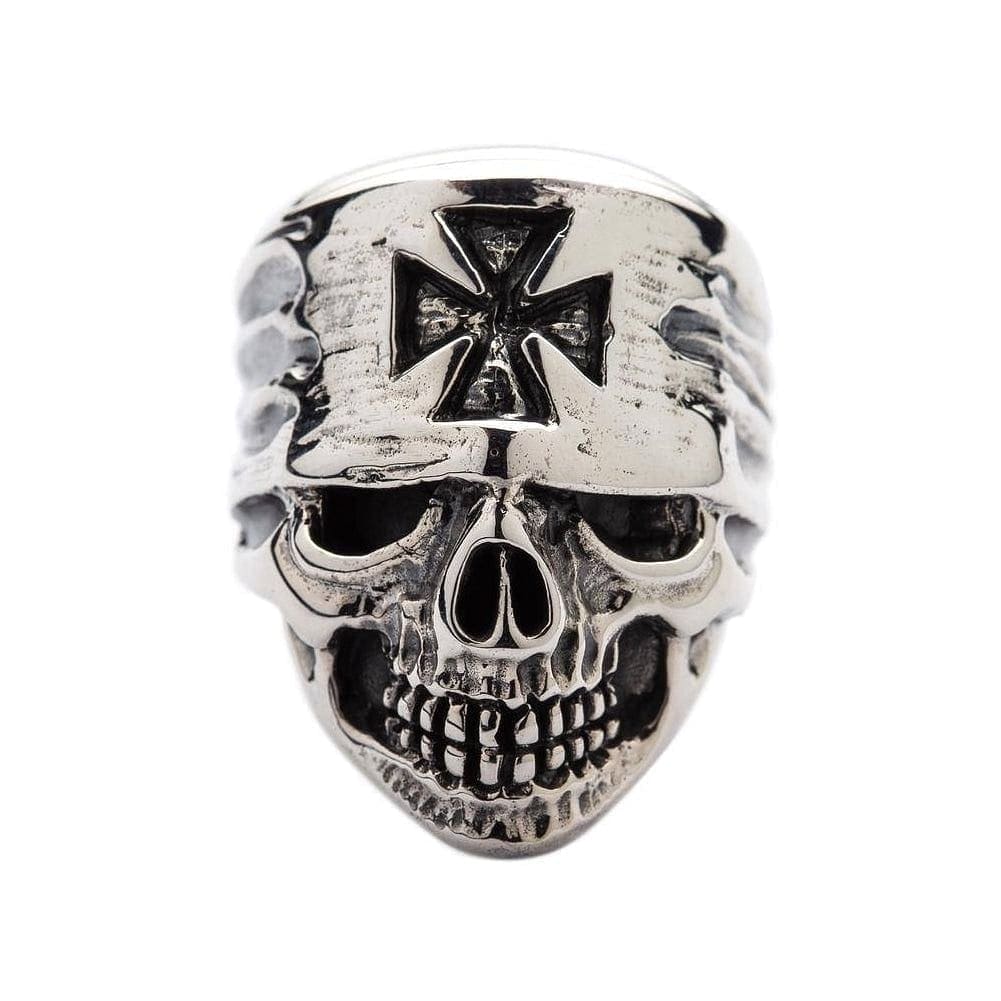 Anillo Cruz de Hierro con Calavera – Joyería motera de calavera en plata de ley