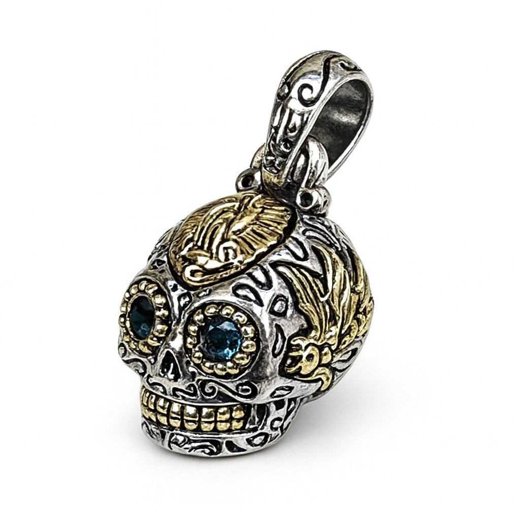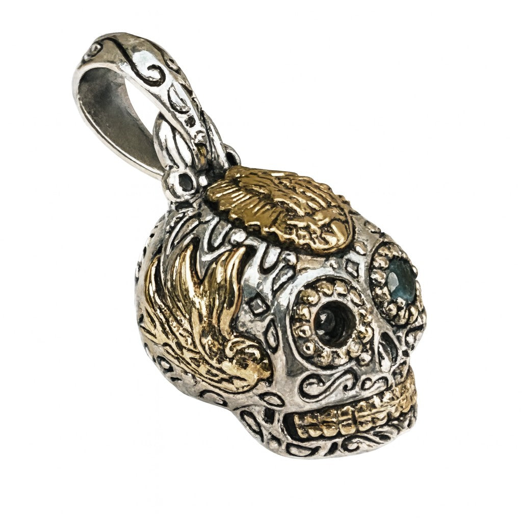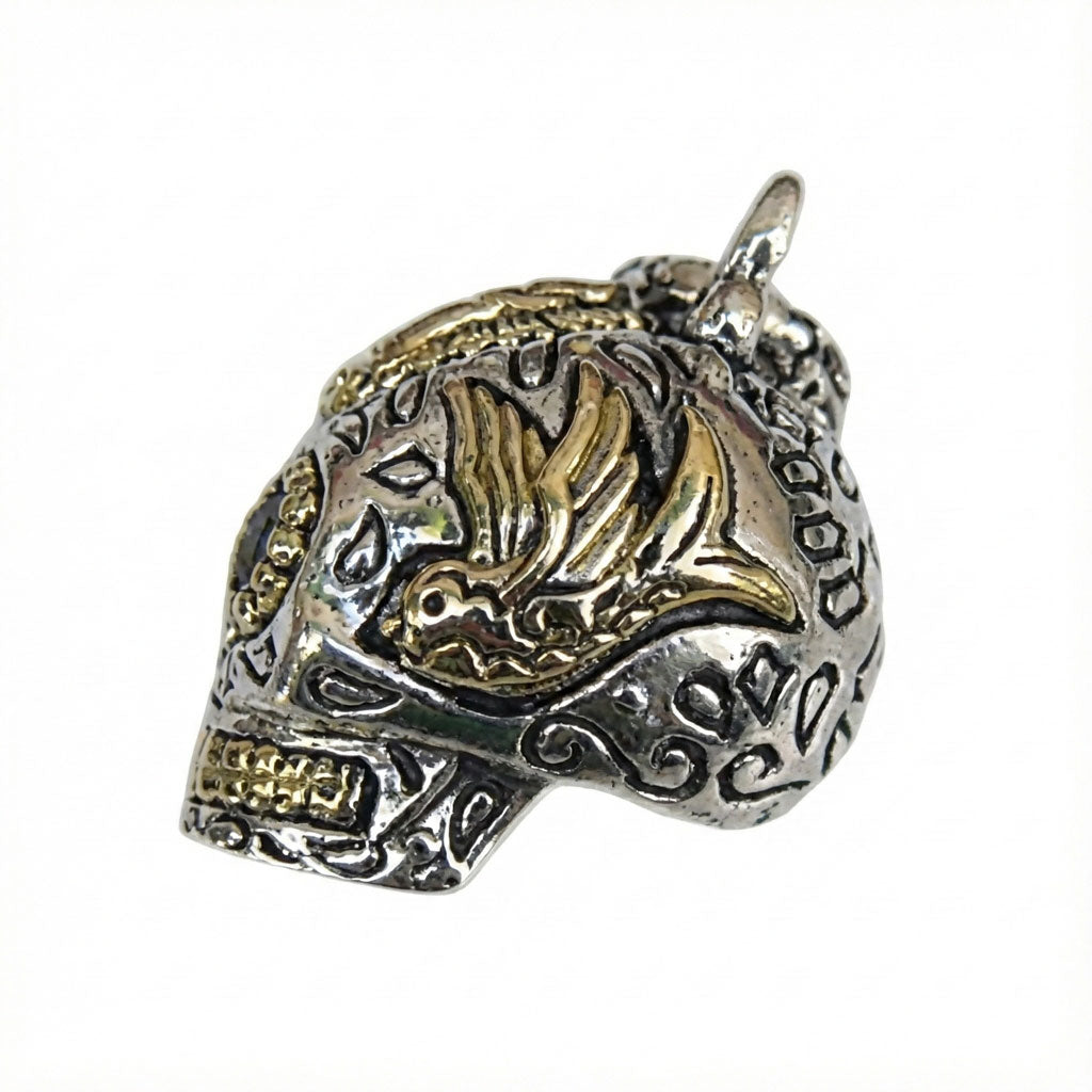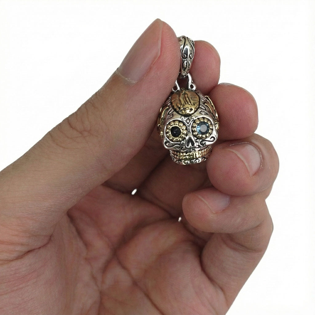💀 Pequeño colgante de Calavera Mexicana de Azúcar en Plata de Ley y Latón Steampunk