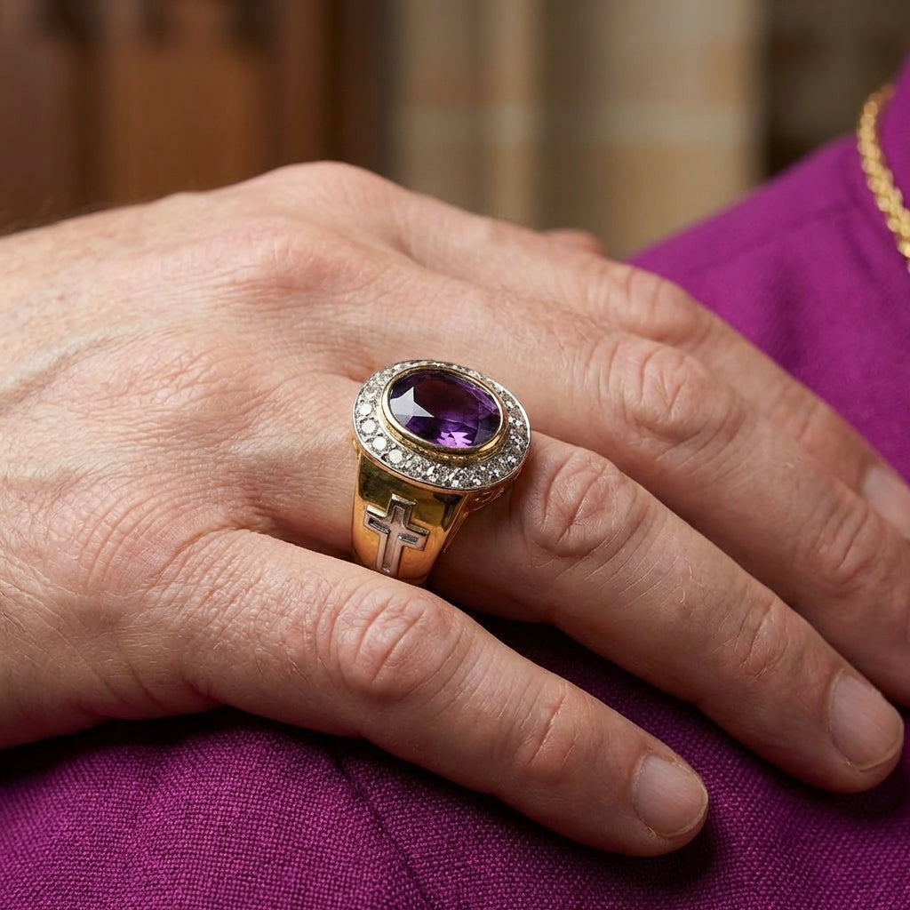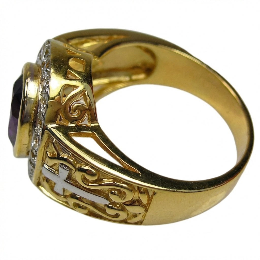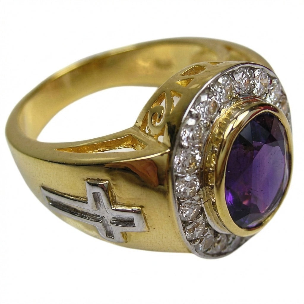 Kaksisävyinen kulta- ja hopearisti, piispa-sormus ametistilla