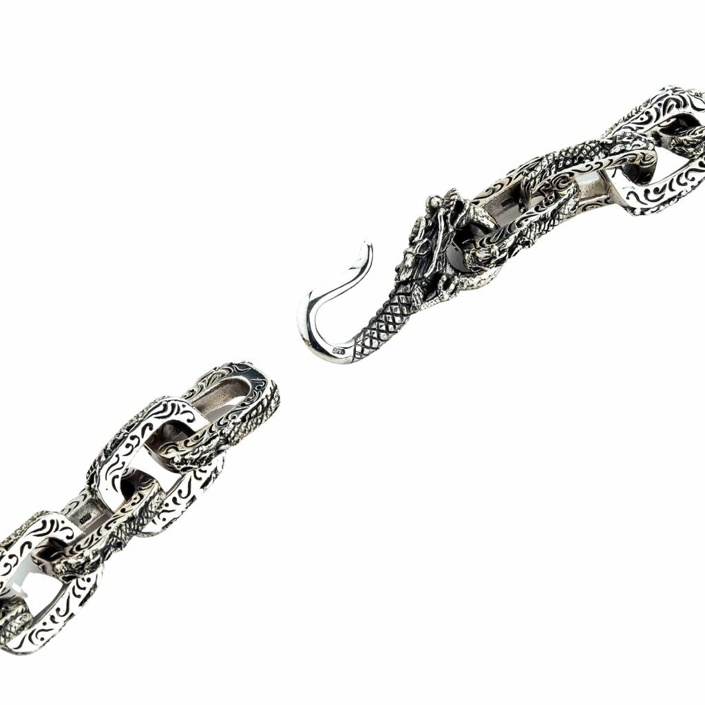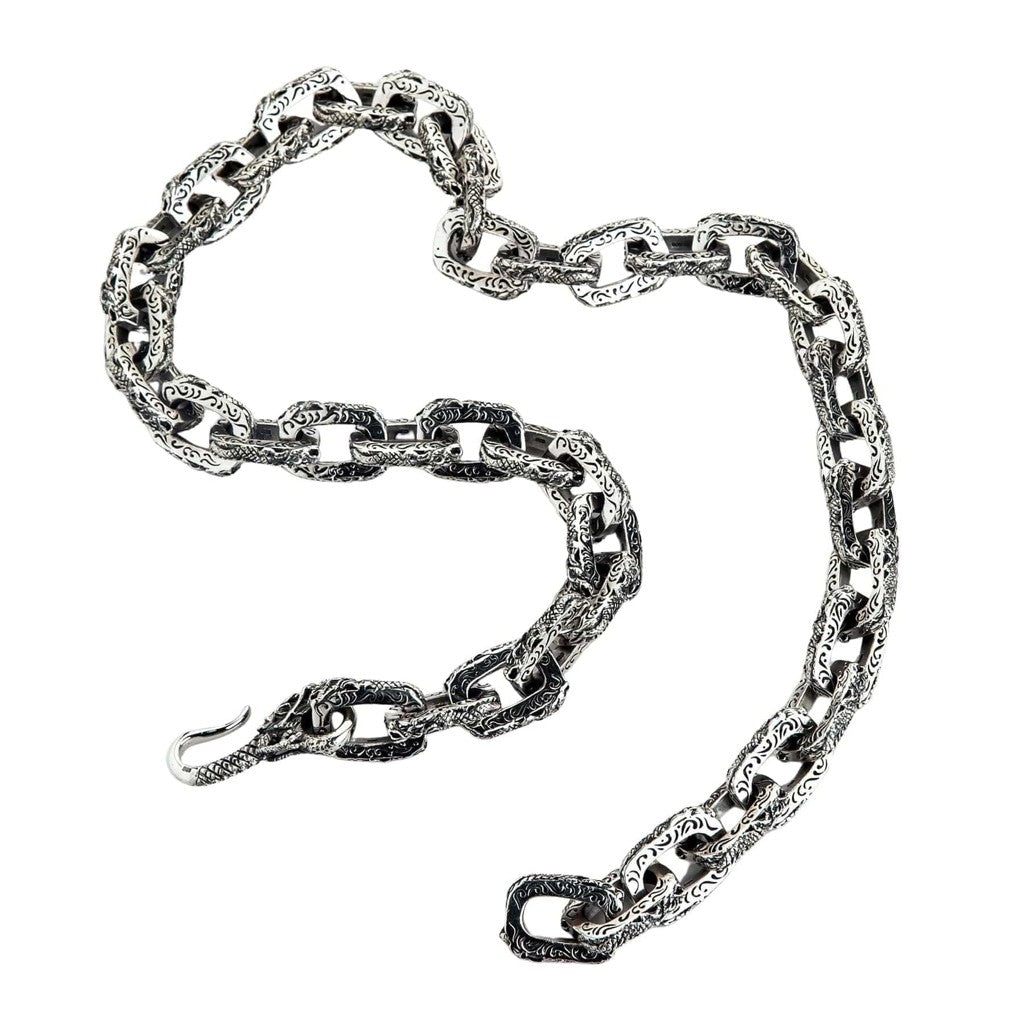 Hopeinen lohikäärmekoru – Raskas 925 sterling-hopeinen miesten lohikäärmeketju