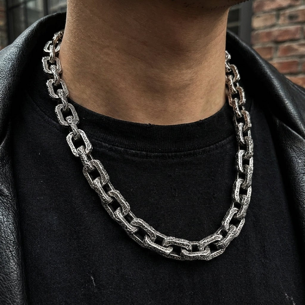 📏 Vaikuttava lenkin koko: Jokaisen lenkin leveys on noin 19 mm (¾”), mikä luo näyttävän, hallitsevan ja unohtumattoman vaikutelman, joka varmasti herättää huomiota.