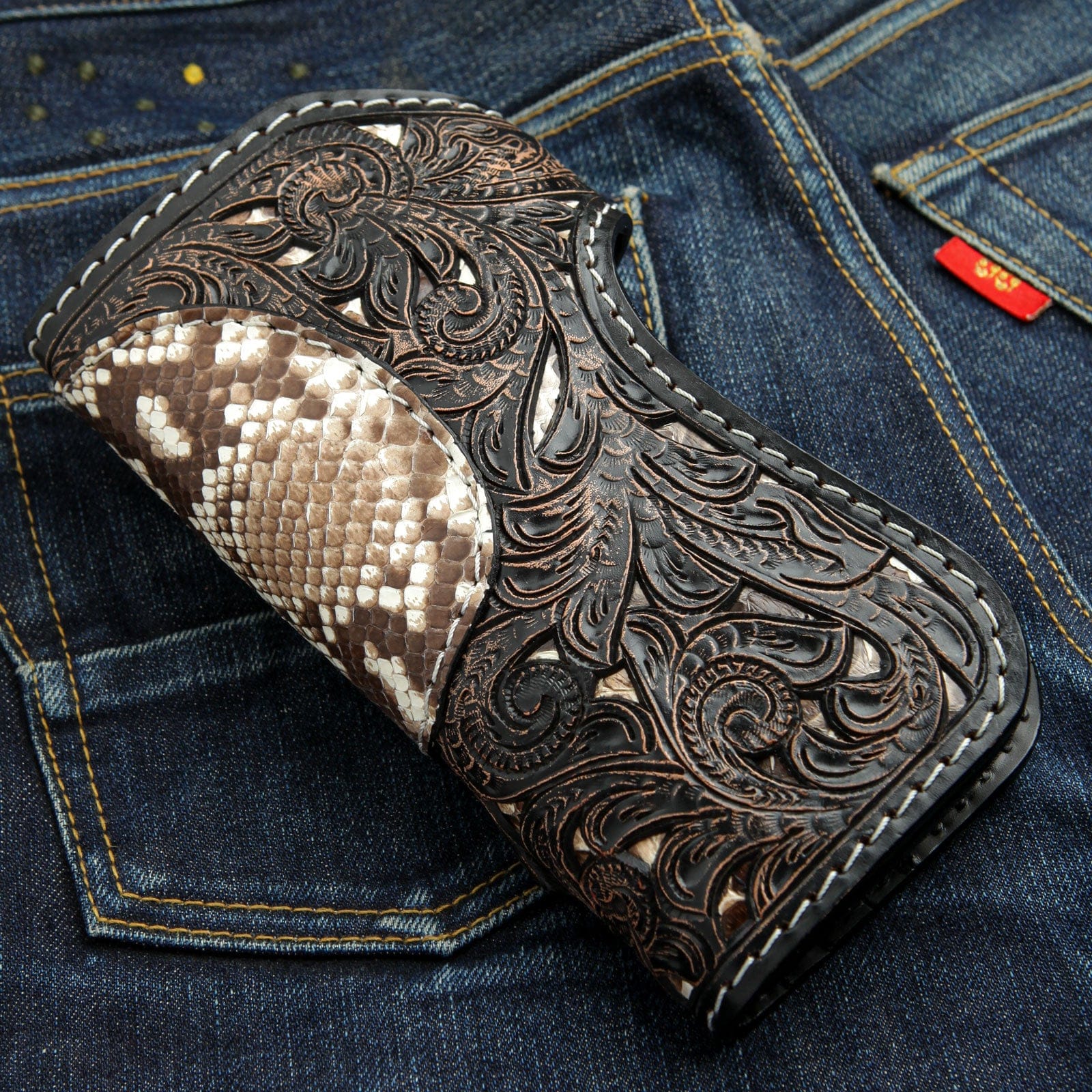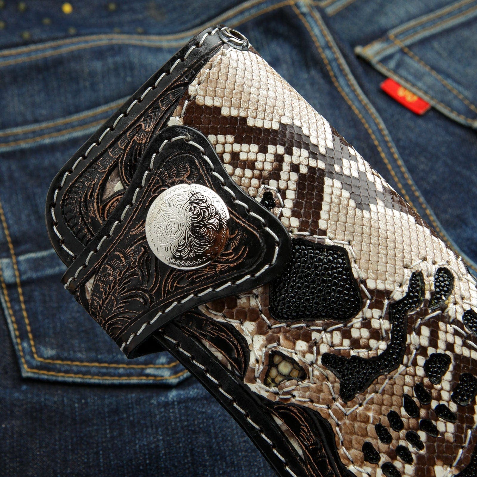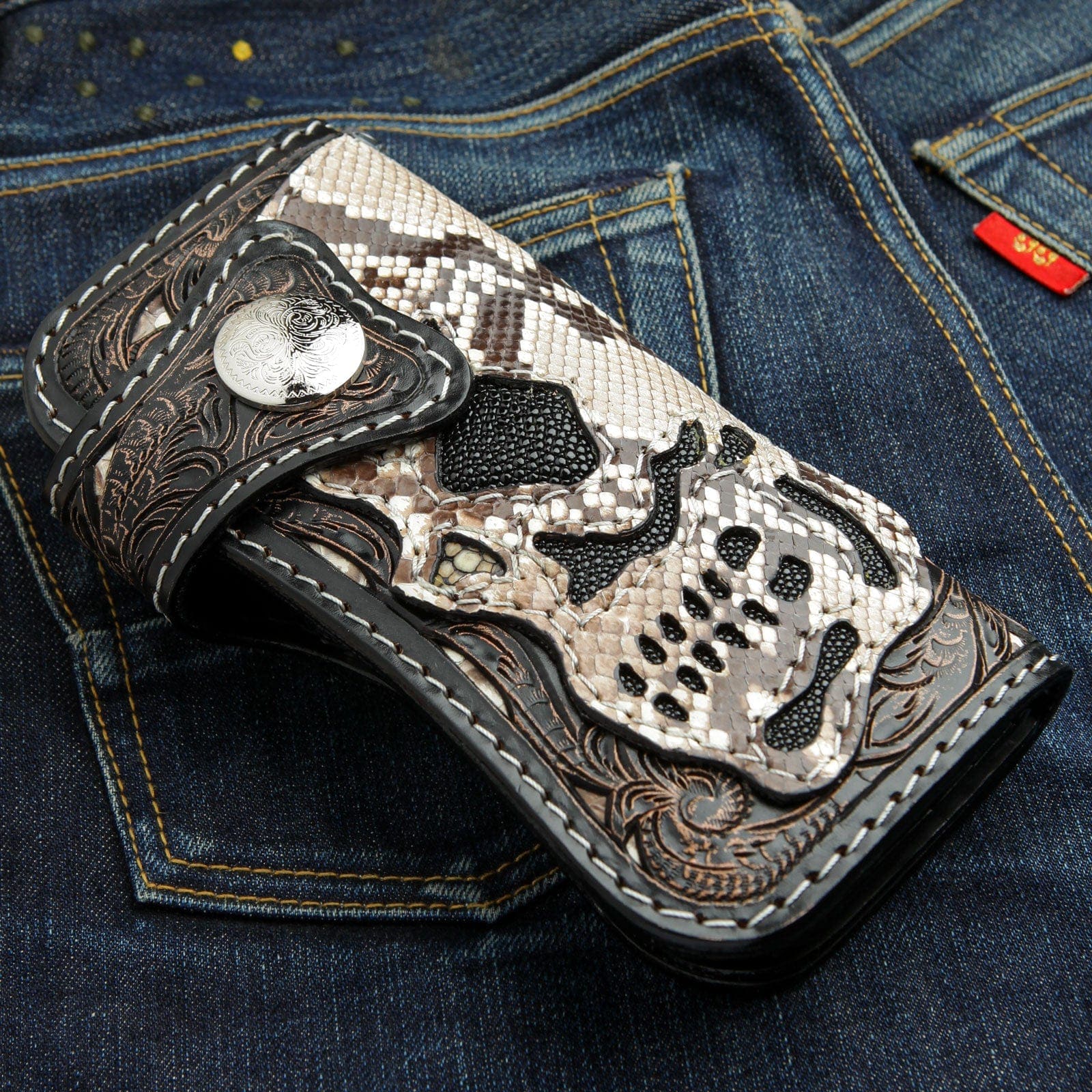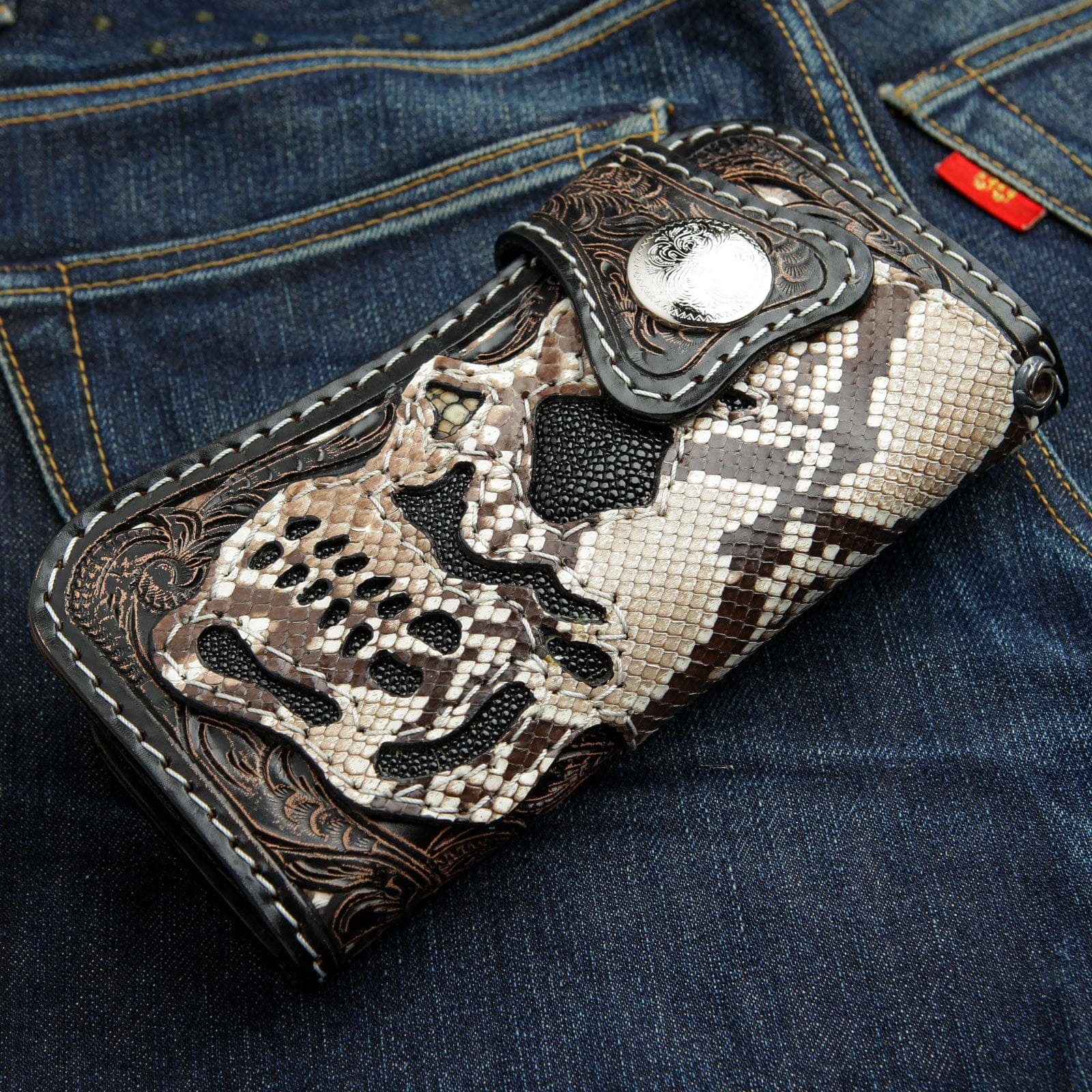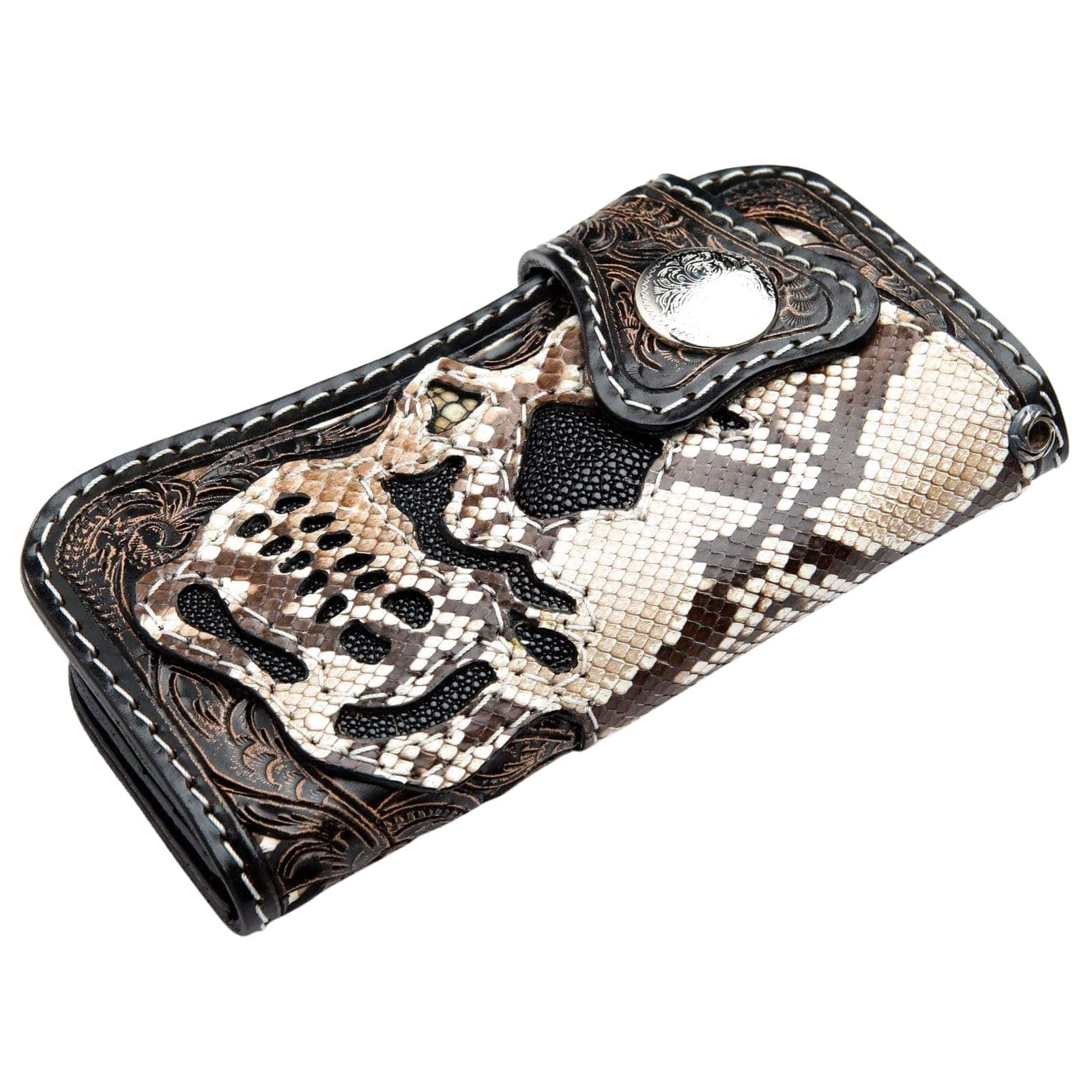 Käsinkaiverrettu kobra & rausku pääkallo biker-lompakko