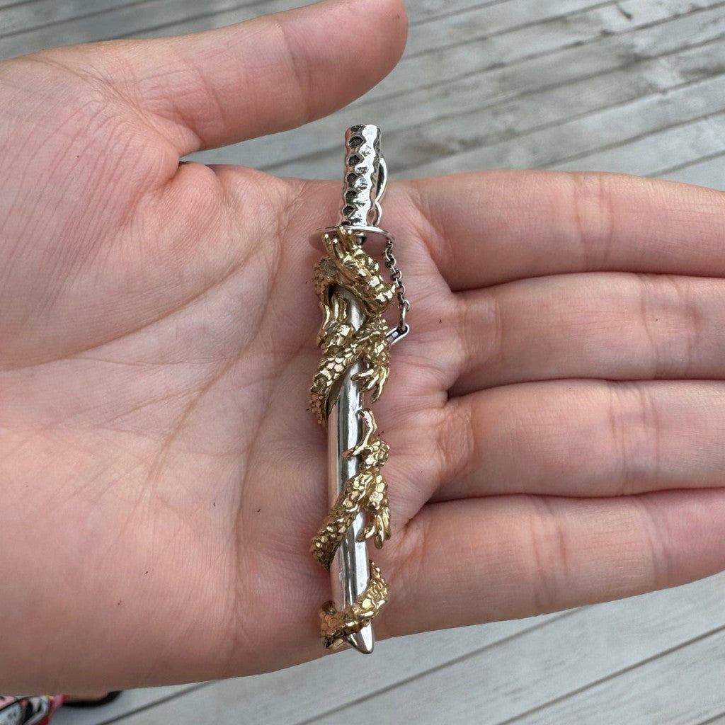 🐉 Kultapäällysteinen messinkilohikäärme kietoutuu sterlinghopeisen tuppiosan ympärille