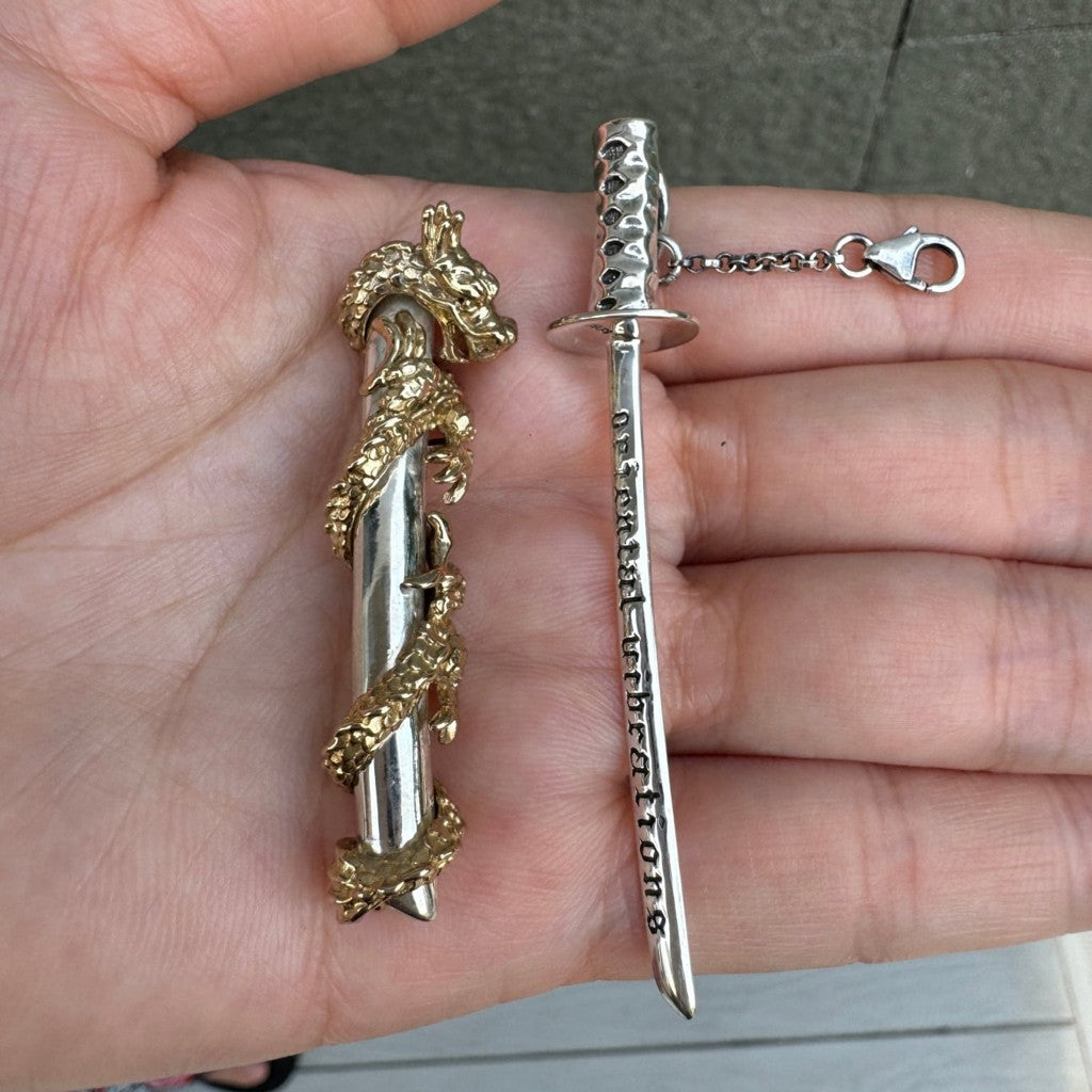 Samurai-lohikäärme miekka messinki sterlinghopea miesten riipus