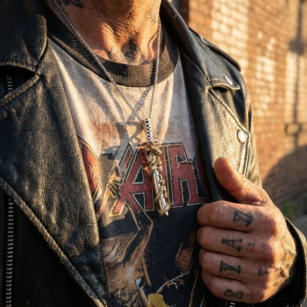 ⚔️ Toiminnallinen miekka-riipus, jossa kaiverrettu terä: “Oriental Vibrations”