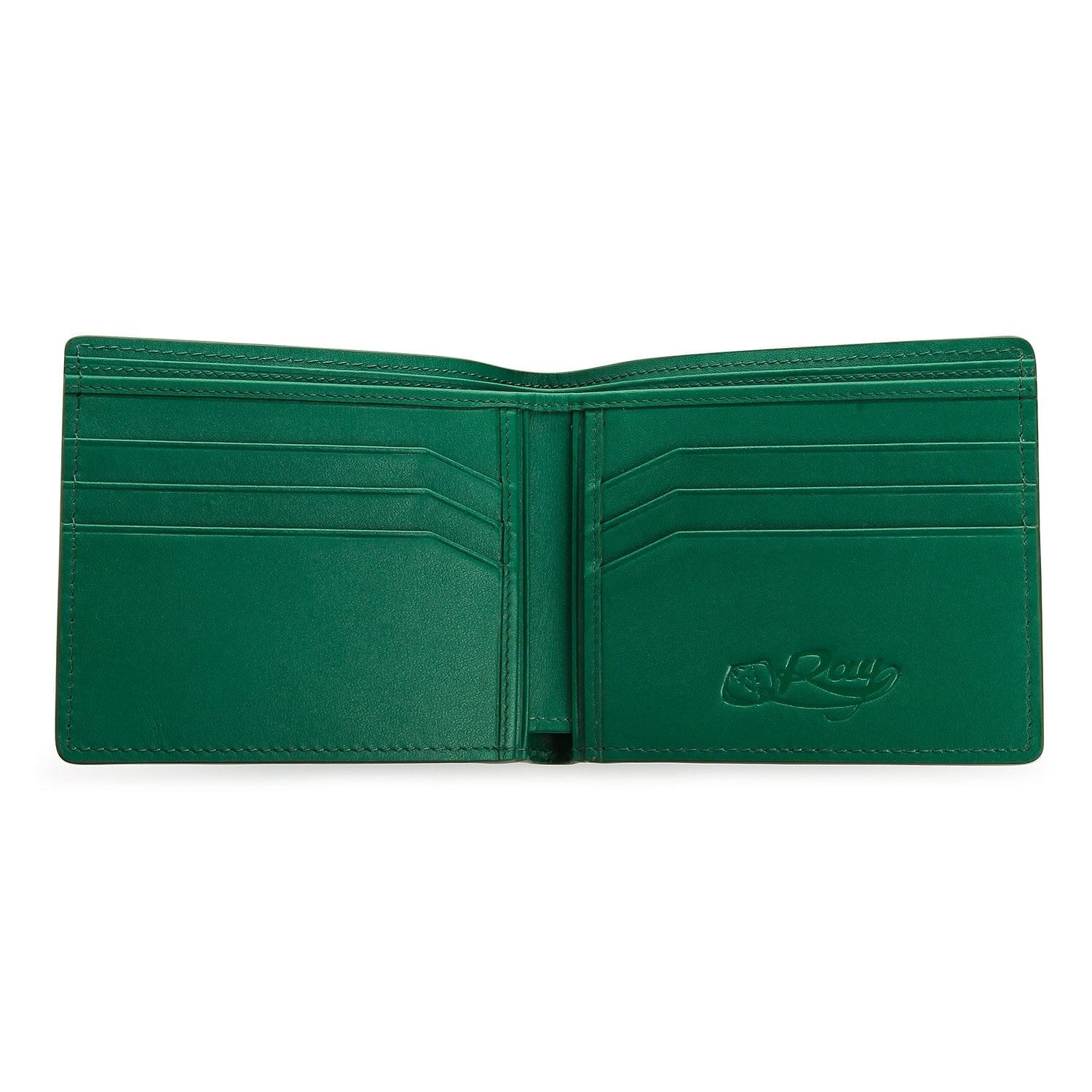 🐄 Ylellinen naudannahkainen sisus: Lompakko avautuu paljastaen pehmeän, joustavan ja kestävän naudan nahkaisen sisuksen, joka on sävyltään eloisan vihreä.