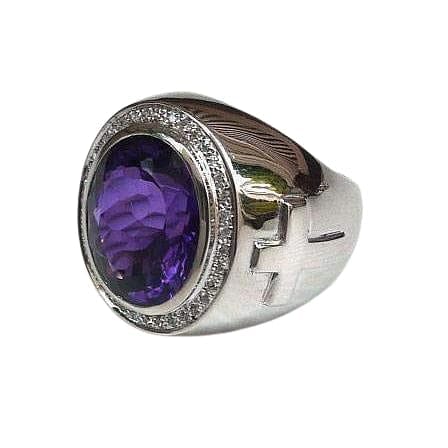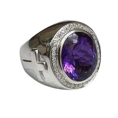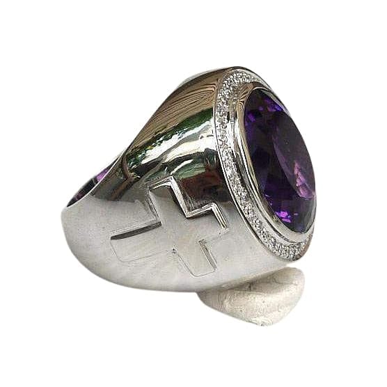Jättimäinen 21 karaatin luonnollinen ametisti-piispansormus sterlinghopeasta