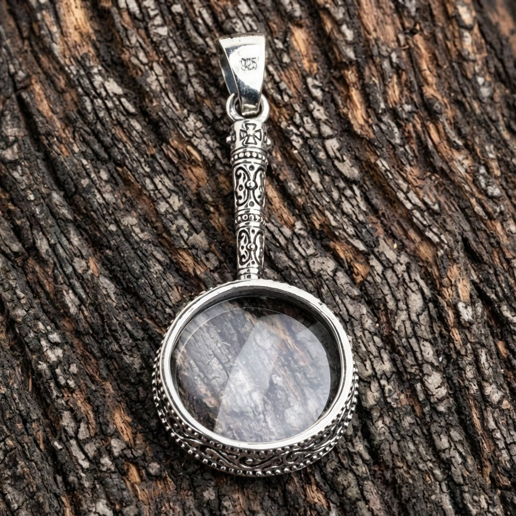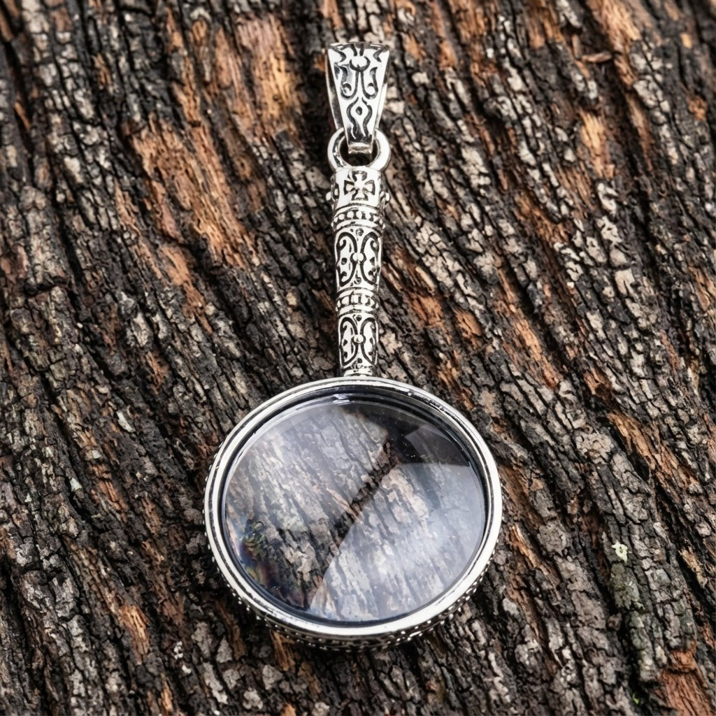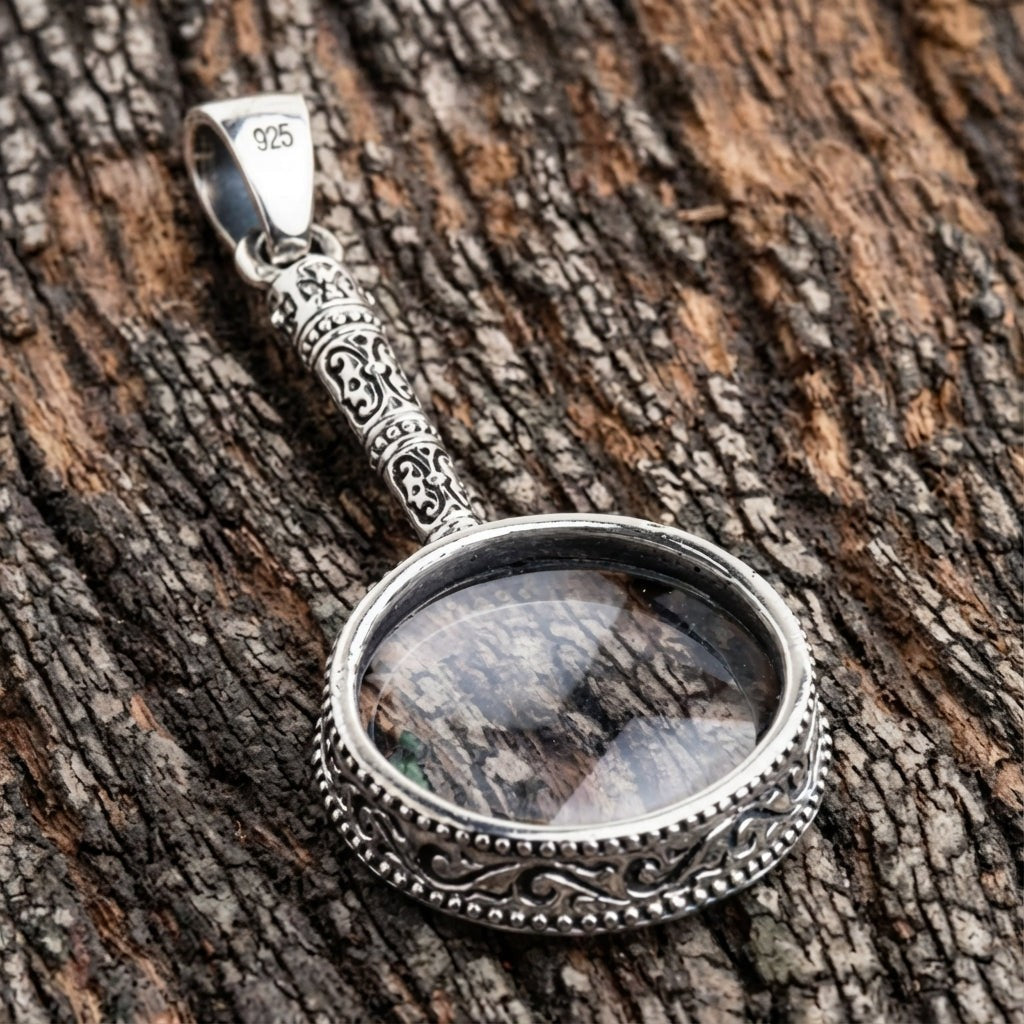 🔍✨ Goottilainen suurennuslasi 925 sterlinghopeariipus – Uniikki & elegantti asuste