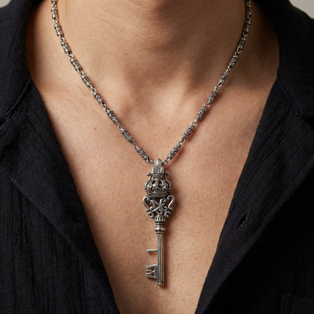 Tribal Rocker Crown Key 925 Sterling-hopeaa miesten kaulakoru