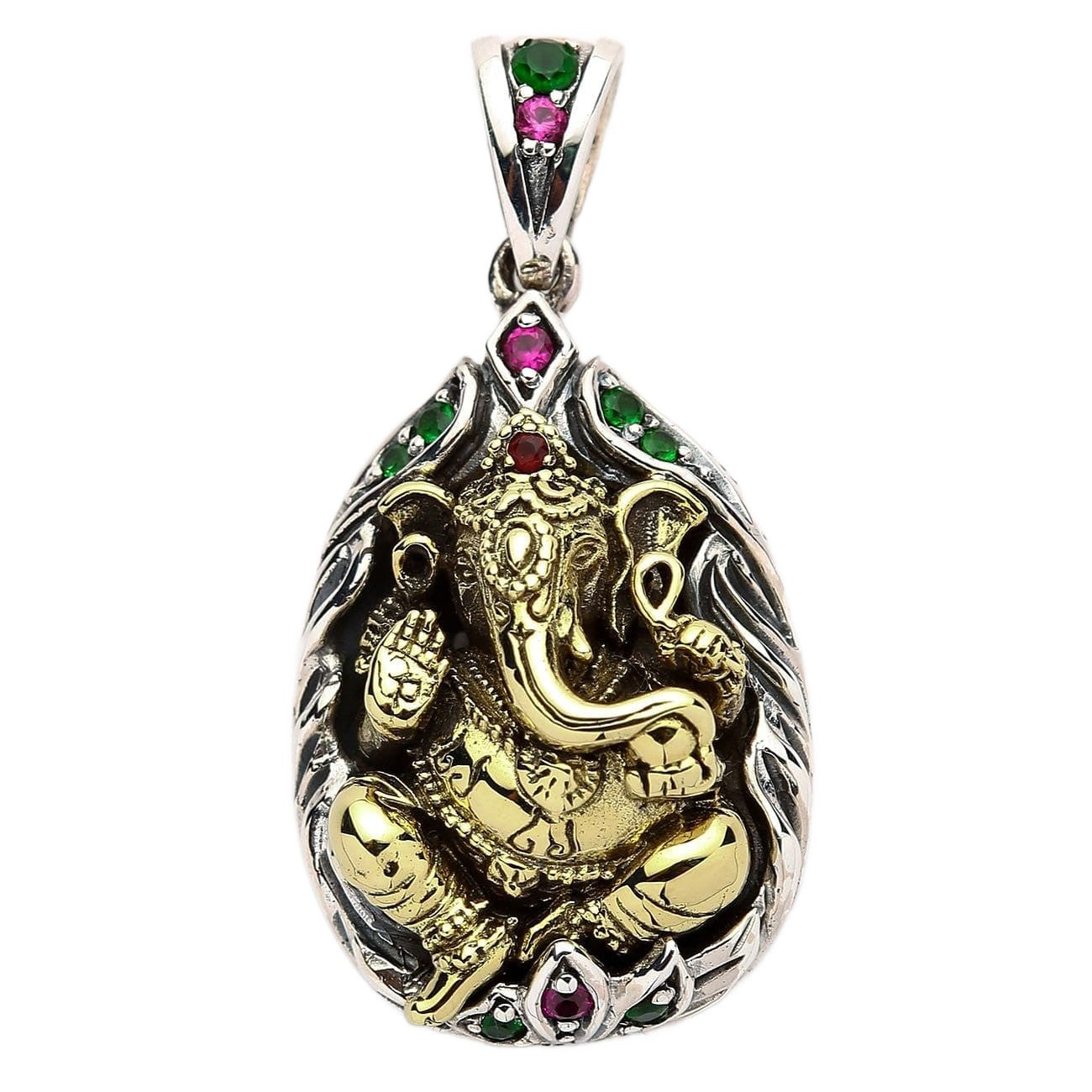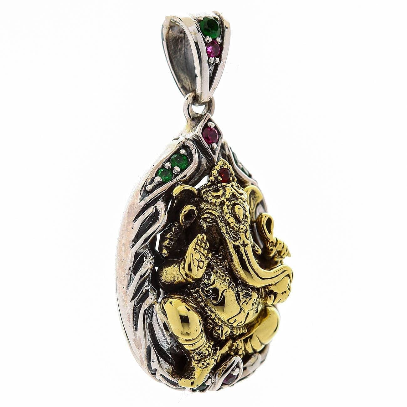 Pendentif Ganesh en argent sterling et laiton avec pierres précieuses