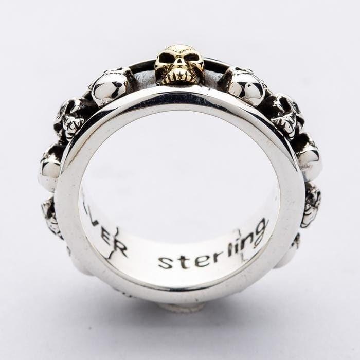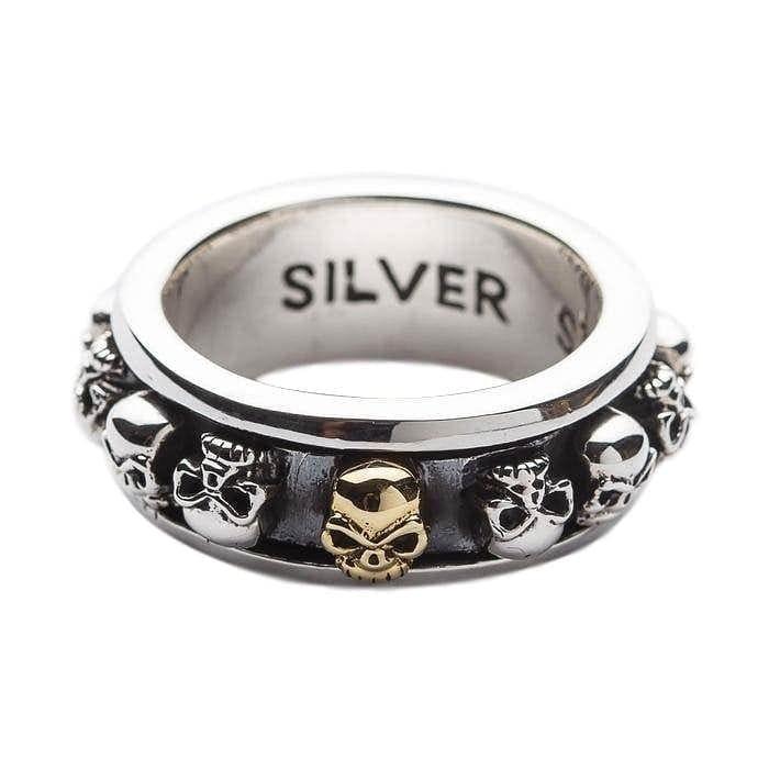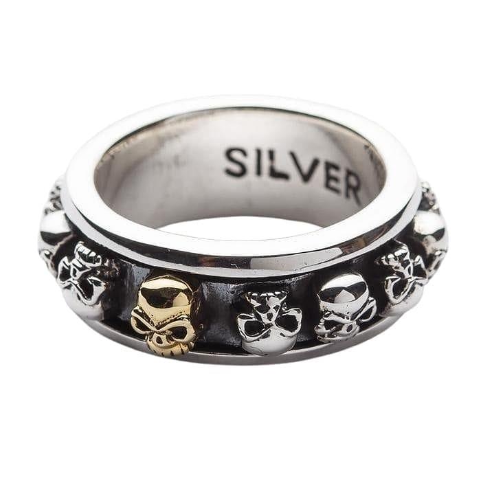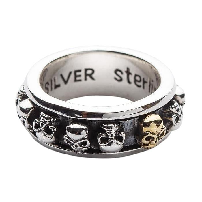 Bague Spinner Crâne en Argent Sterling 925 et Or — Alliance Tête de Mort
